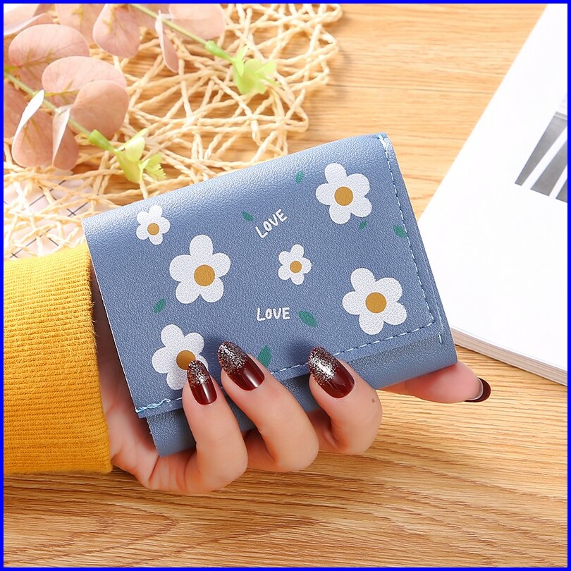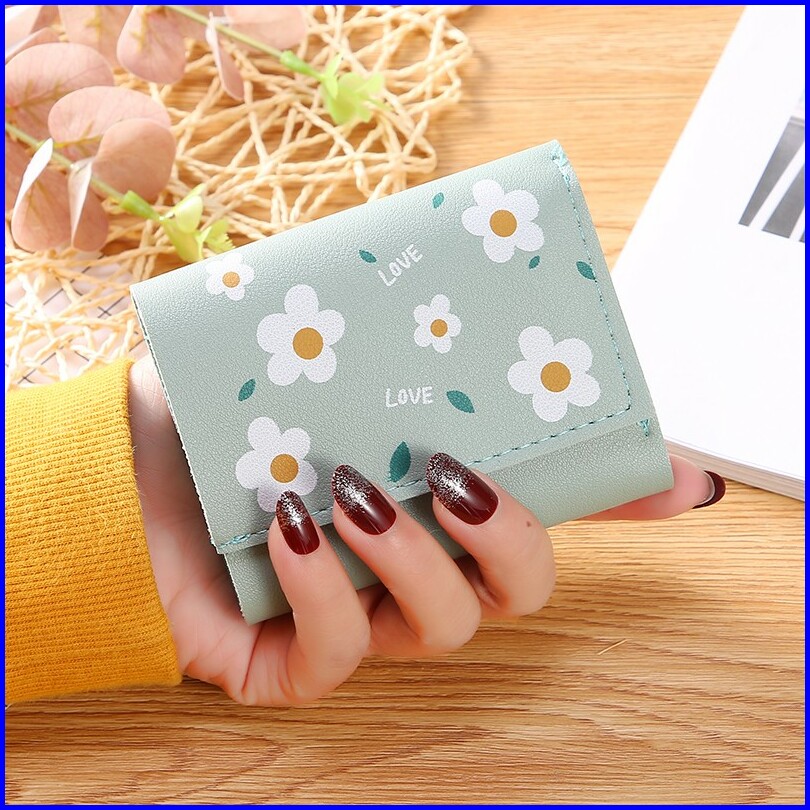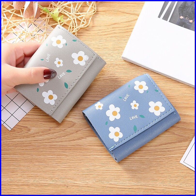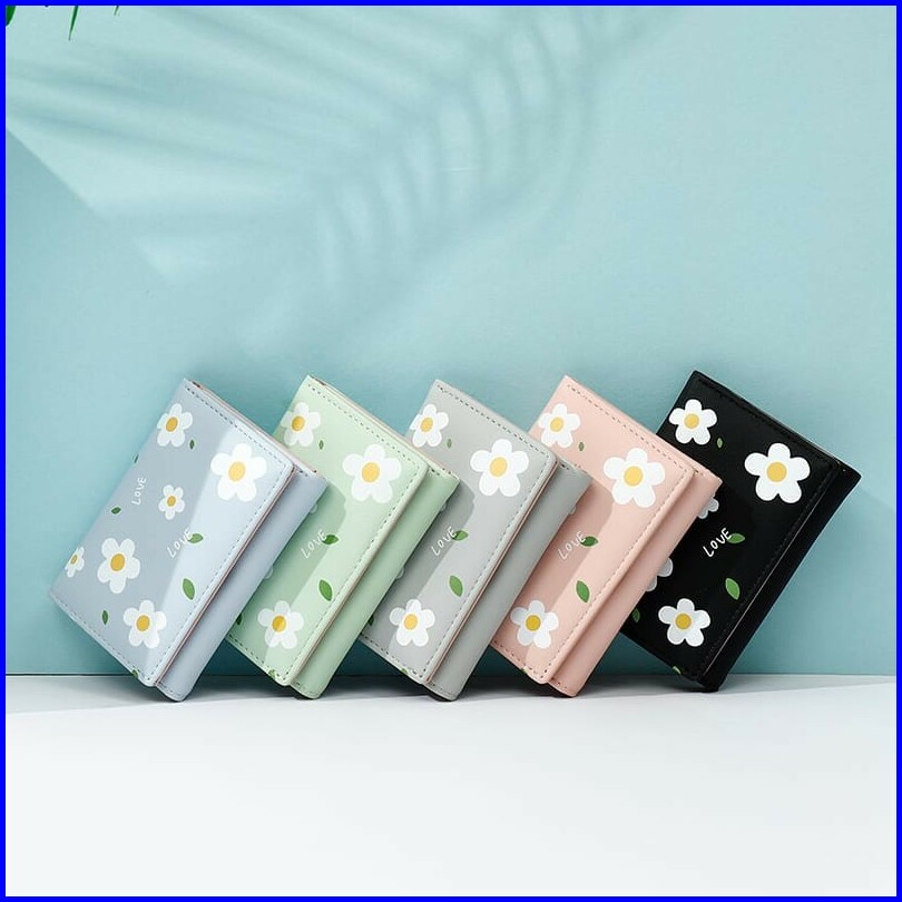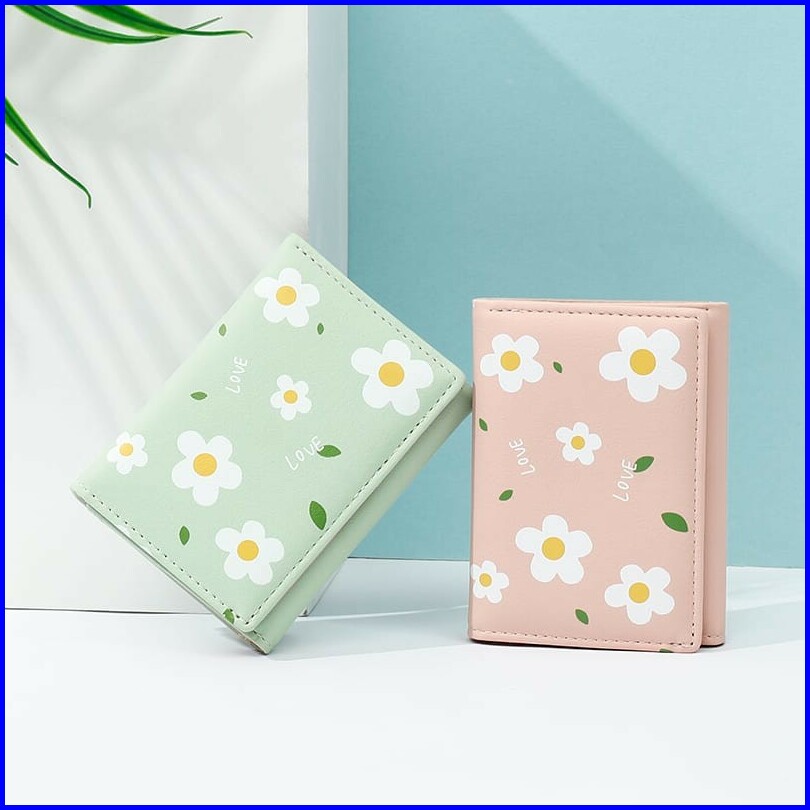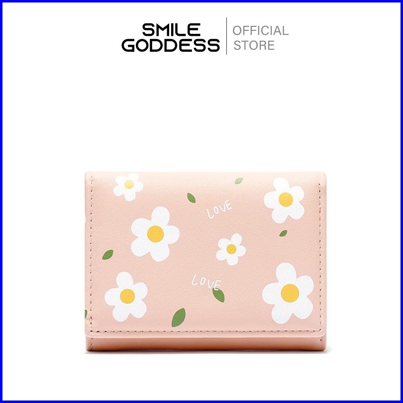 Smile Goddess Dompet Wanita Dompet Lipat Pendek Daisy Pattern Dard Holder H107