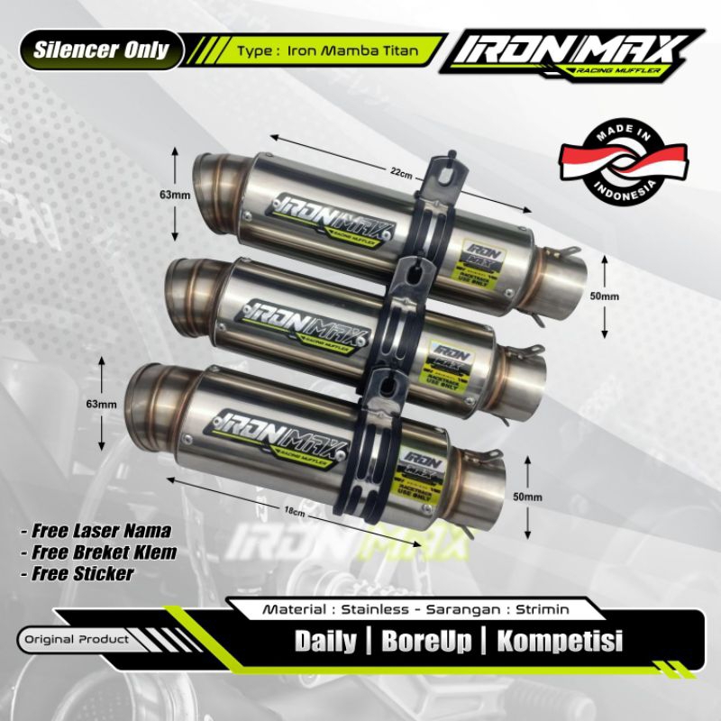 Silincer Knalpot Ironmax Original Type Mamba Titan Malaysian style Inlet 50mm