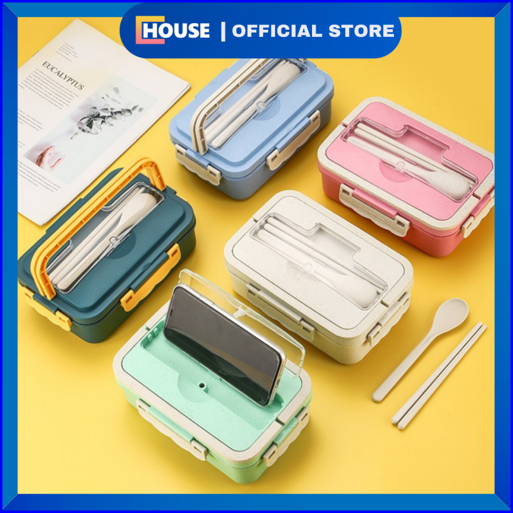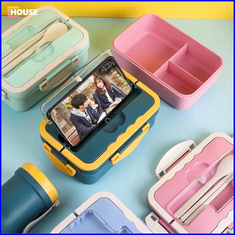 U House Lunch Box Set Kotak Makan Anti Tumpah Kotak Bekal Makan Jerami Gandum Free Sendok Dan Garpu Food Grade Bpa Free