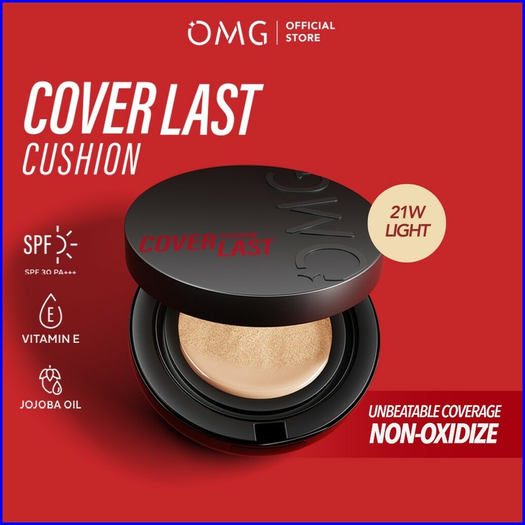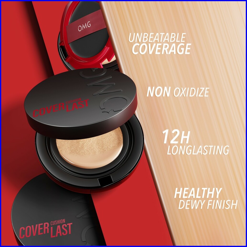 Omg Oh My Glam Coverlast Cushion 15g - Cushion Foundation Concealer Skin Tint Make Up - High Coverage Dewy Finish - Pore