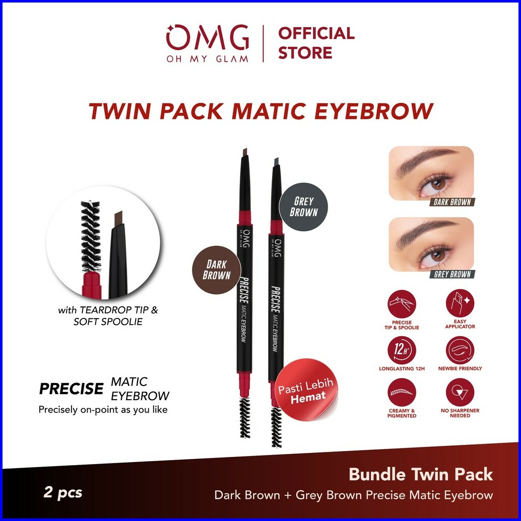 Twinpack Omg Oh My Glam Eyebrow Precise Matic Precisely On-point Pensil Alis Tahan Lama Dan Presisi