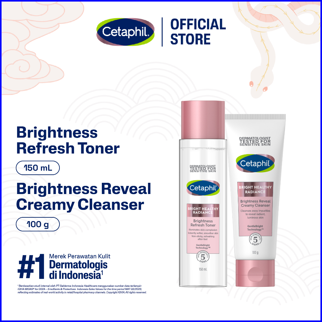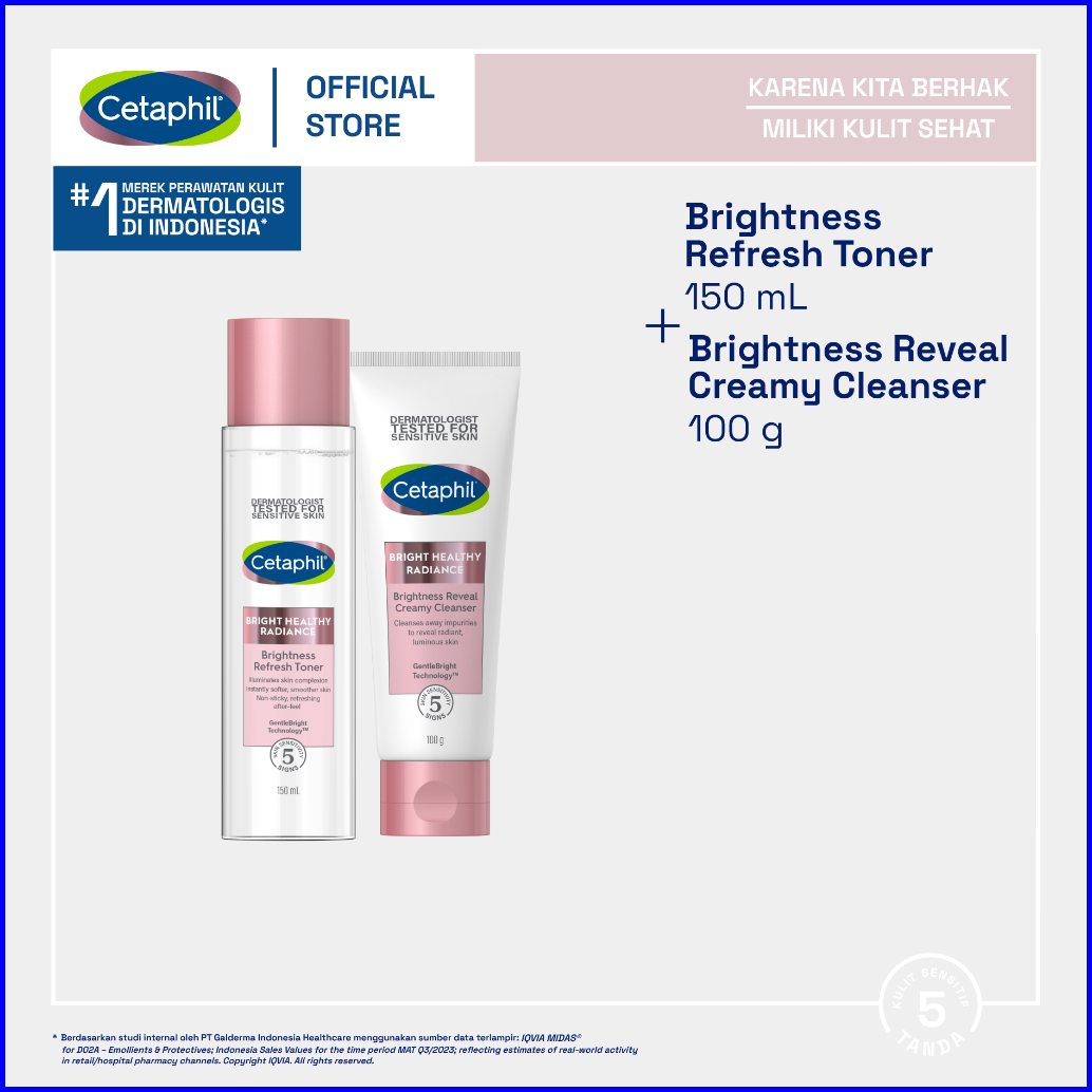 Cetaphil Bright Healthy Radiance Reveal Creamy Cleanser 100g Brightness Refresh Toner 150ml