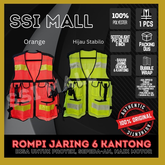 SSI ROMPI SAFETY PR0YEK,TAMBANG,K3,KERJA 6 KANTONG SAKU KANTUNG JARING - HIJAU, ALL SIZE