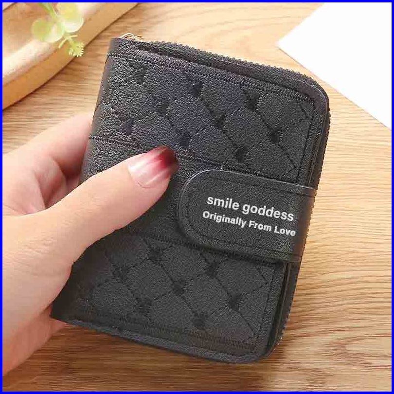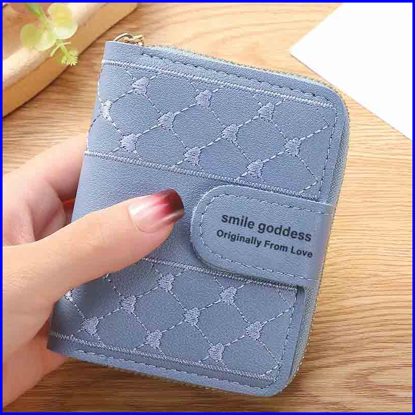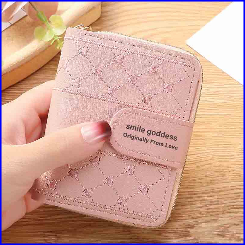 Smile Goddess Versi Korea Wanita Dompet Fashion Ritsleting Tas Koin Bordir Dompet Kulit 916