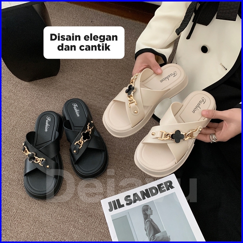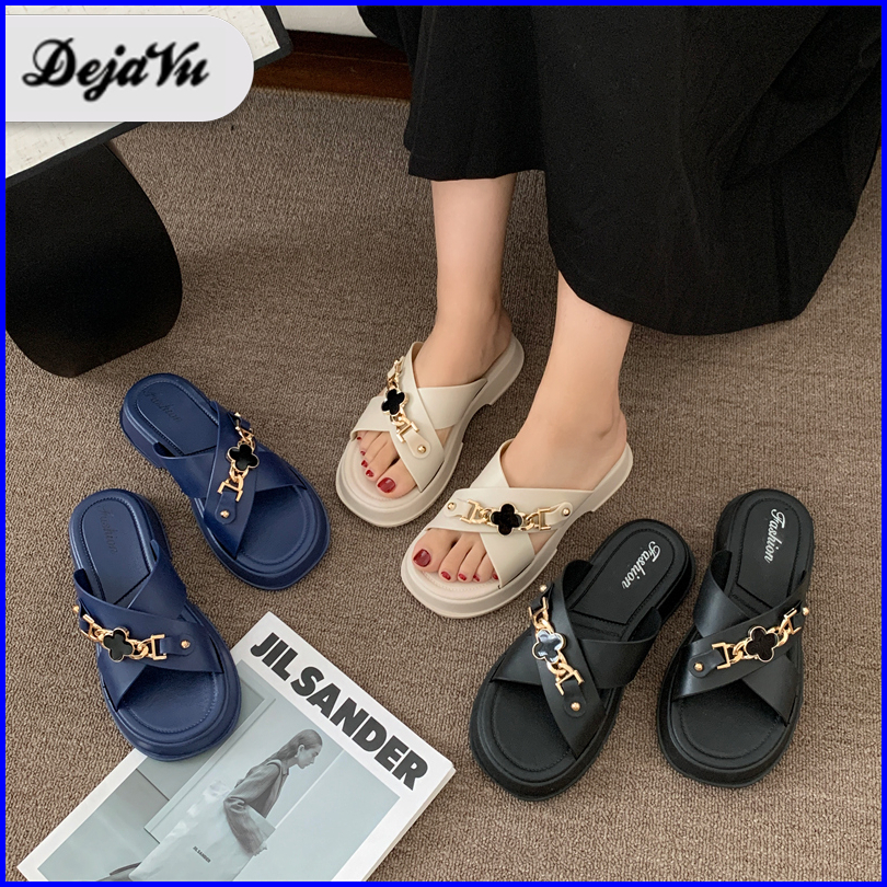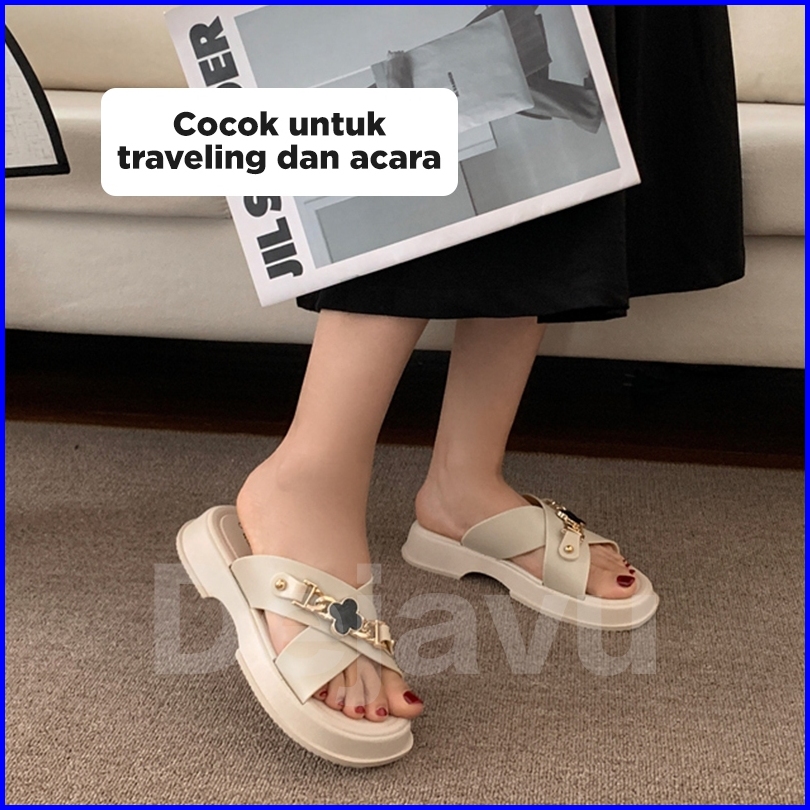 Dejavu Sendal Wanita Slop Jelly Kekinian Sandal Karet Rumah Flat Anti Slip Casual Hsn210