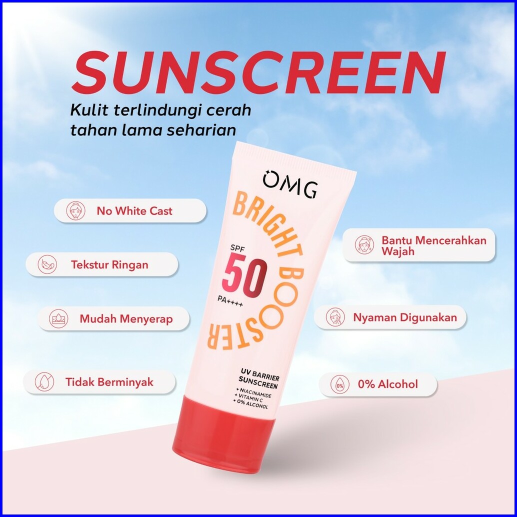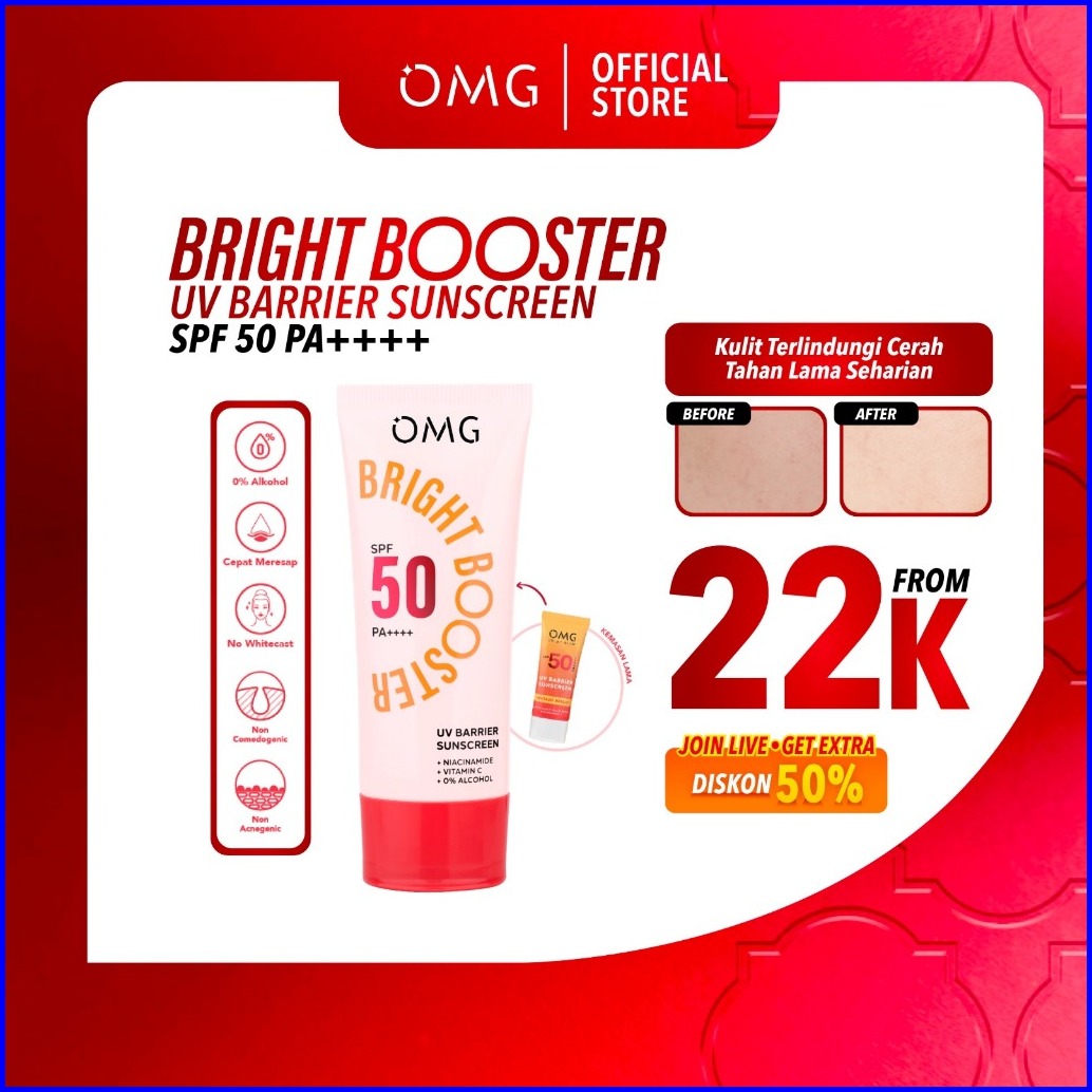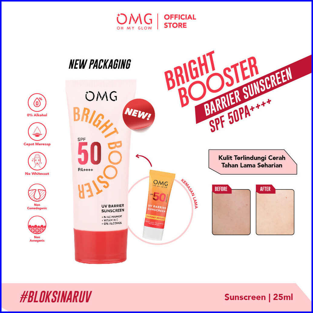 Omg Oh My Glow Bright Booster Uv Barrier Sunscreen Spf 50 Pa - Untuk Semua Jenis Kulit - Tone Up Sunscreen - Ringan Cepa