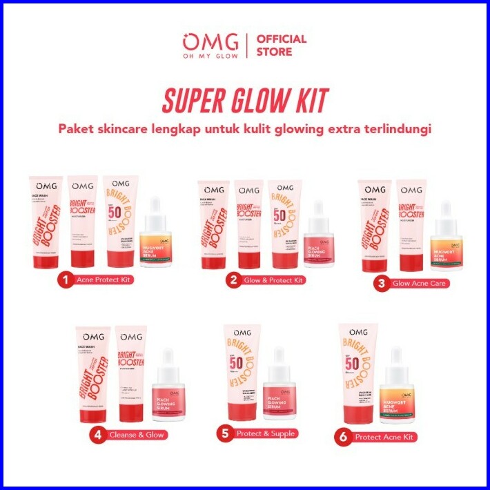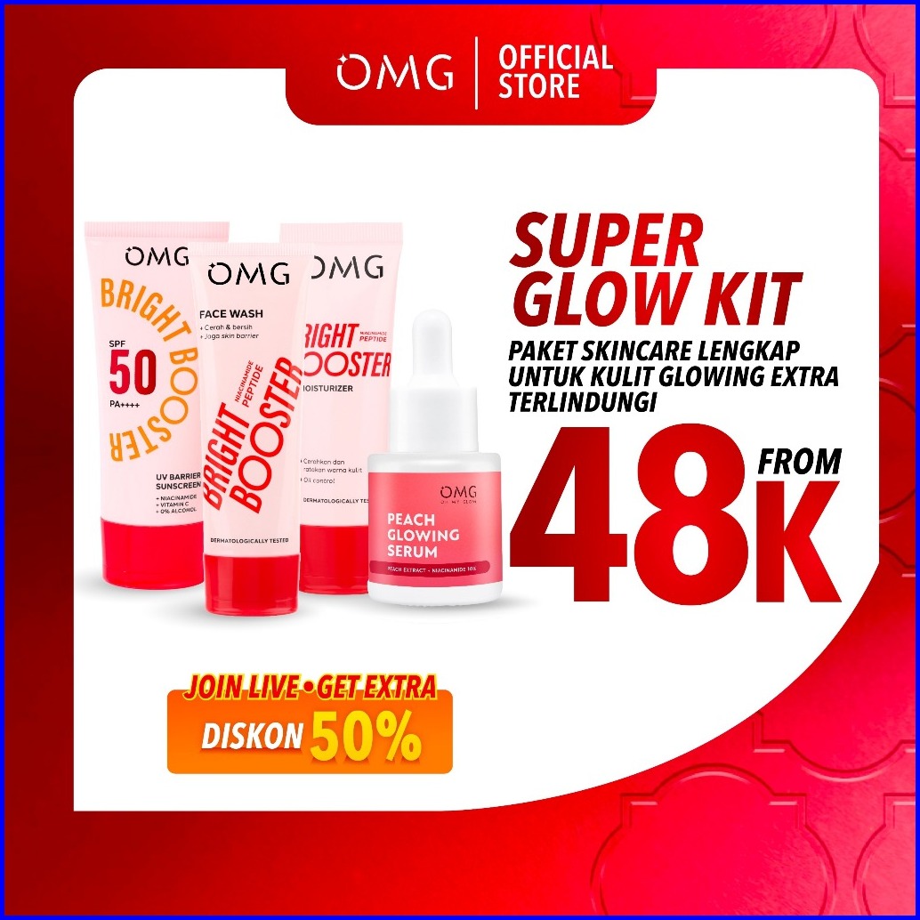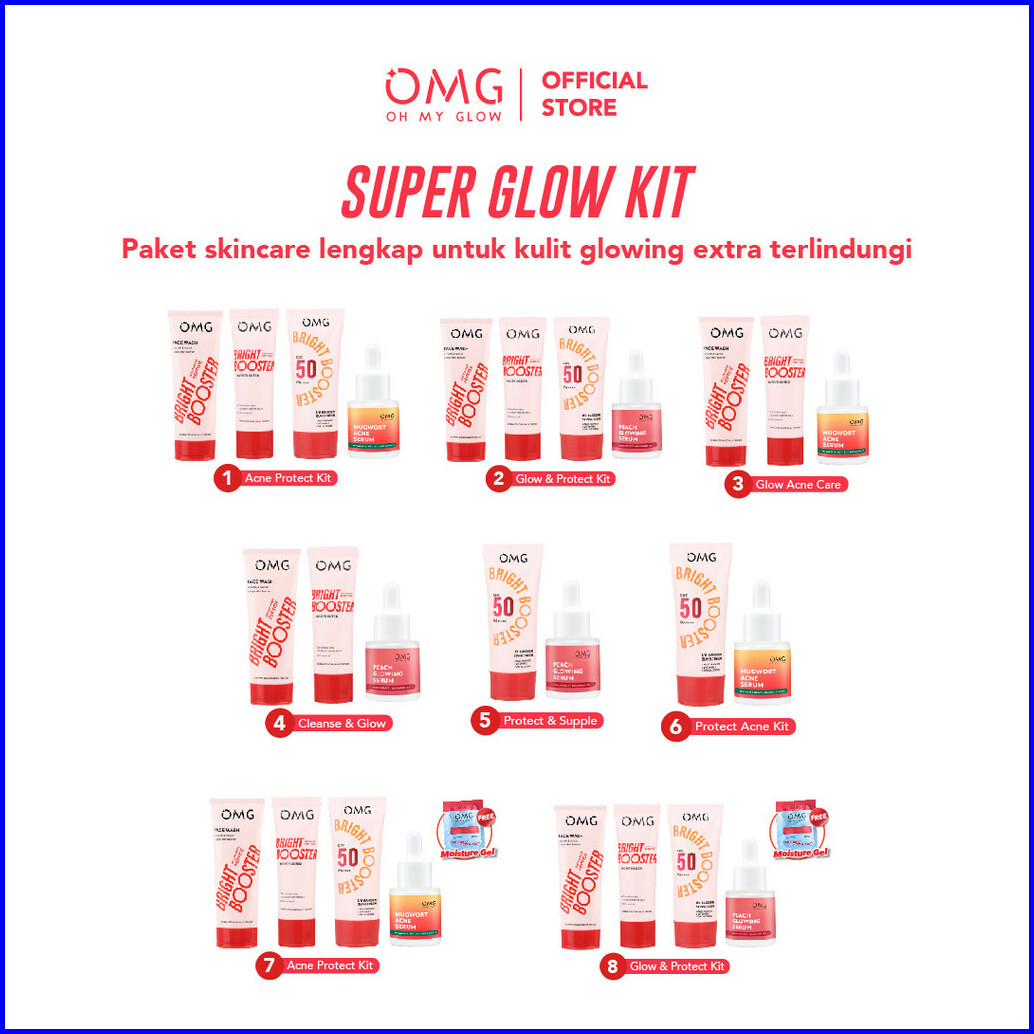 Best Seller Bundle Omg Bright Booster Super Glow Kit Tone Up Face Wash Moist Cream Serum Sunscreen - Untuk Kulit Tampak