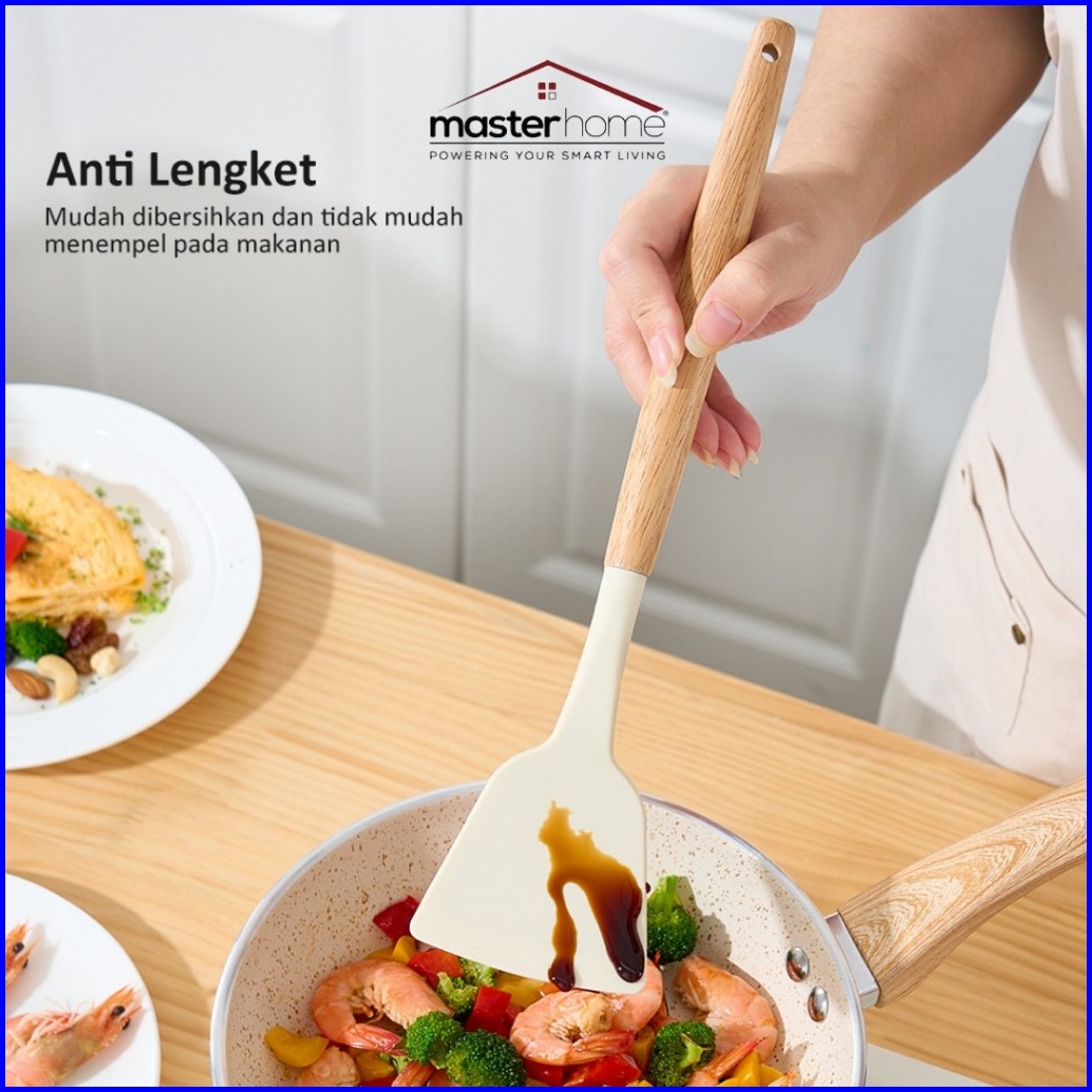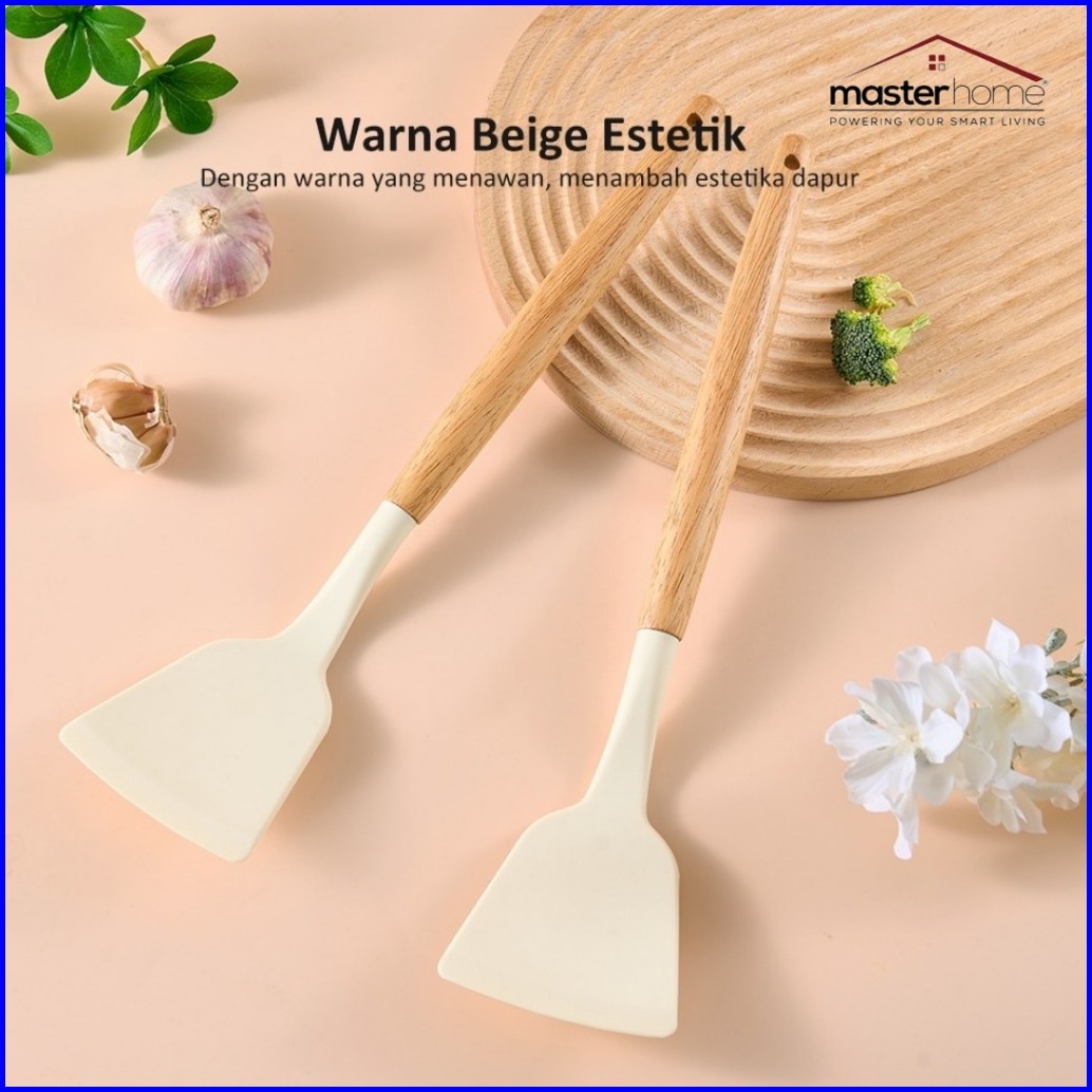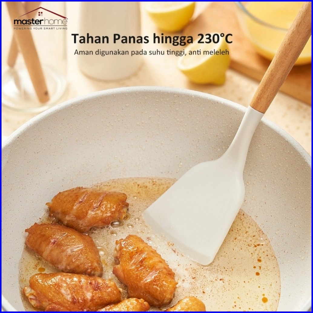 Masterhome Spatula Silikon Tahan Panas Tebal Sutil Silikon Gagang Kayu Silicone Utensil Premium Sodet Silikon
