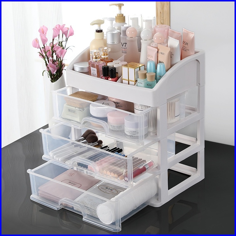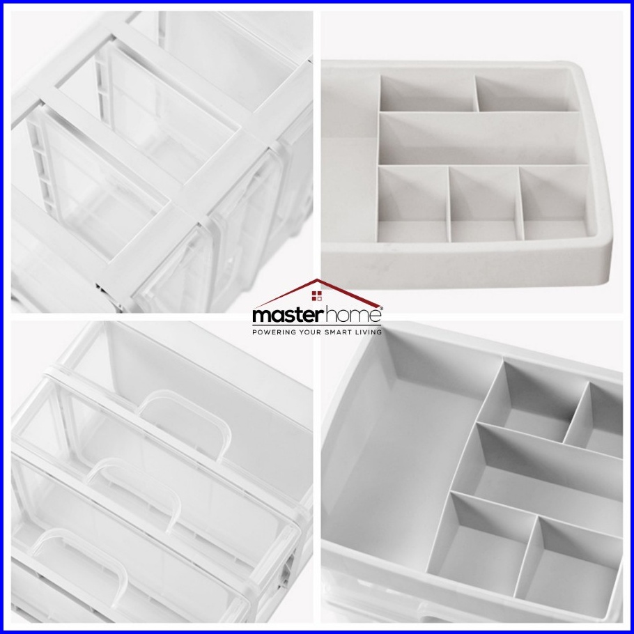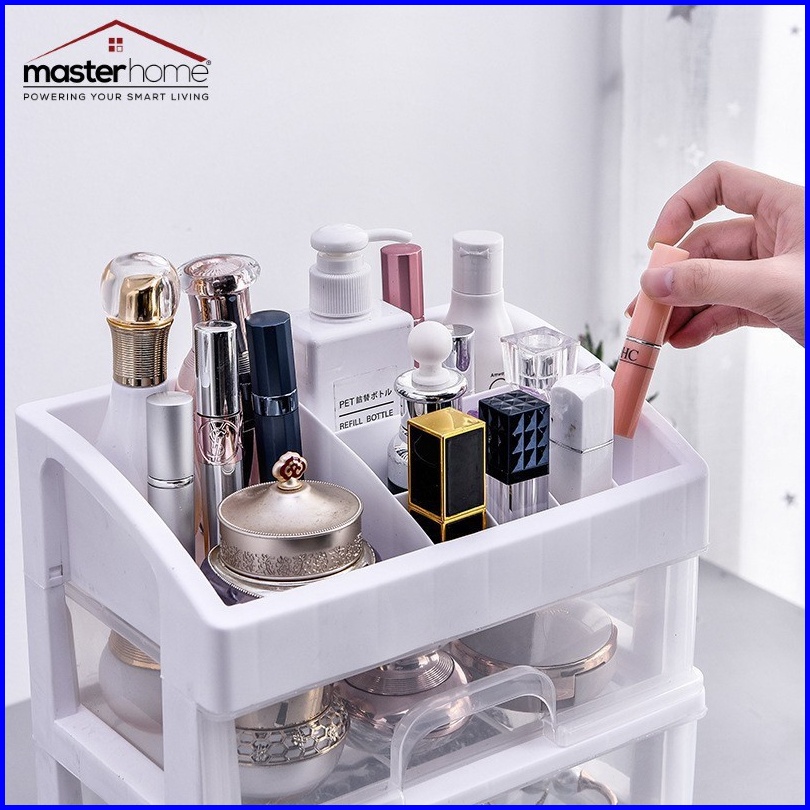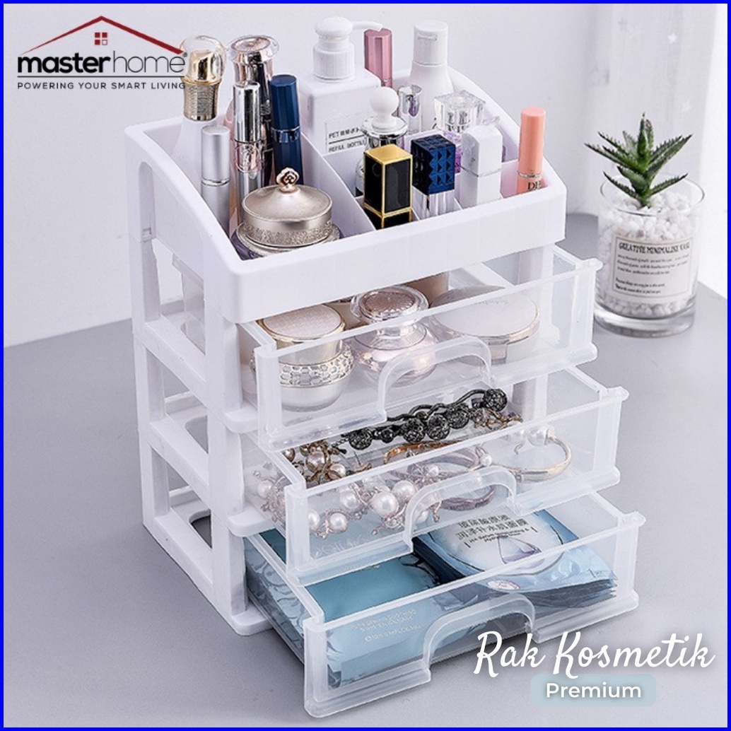 Masterhome Rak Kosmetik Multifungsi Rak Kosmetik 3 Laci Susun Transparan Kotak Penyimpanan