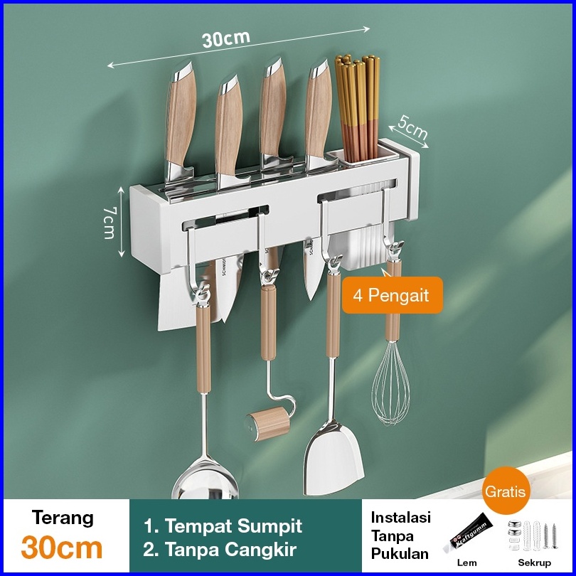Earise Rak Pisau Dinding Dapur Stainless Steel Rak Gantung Dapur Multifungsi Rak Tempel Tanpa Bor