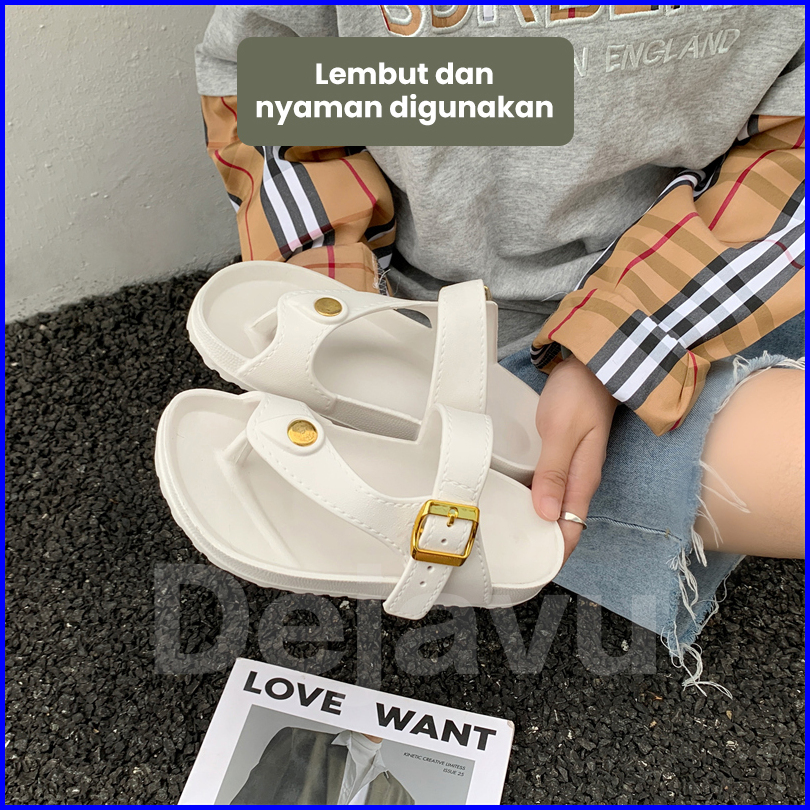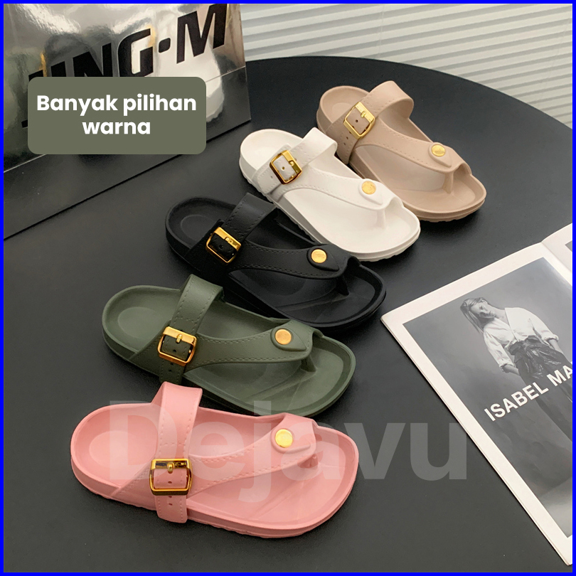 Dejavu Sendal Wanita Jepit Wanita Sendal Flat Karet Wanita Sepatu Rumah Elastis Empuk Kekinian Hsn196