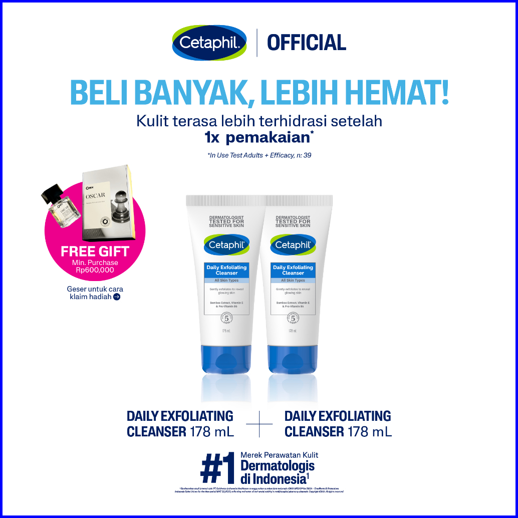 Cetaphil Daily Exfoliating Cleanser 178ml Twin Pack Dengan Vitamin B5 Dan Vitamin E Pembersih Muka Untuk Eksfoliasi Kuli