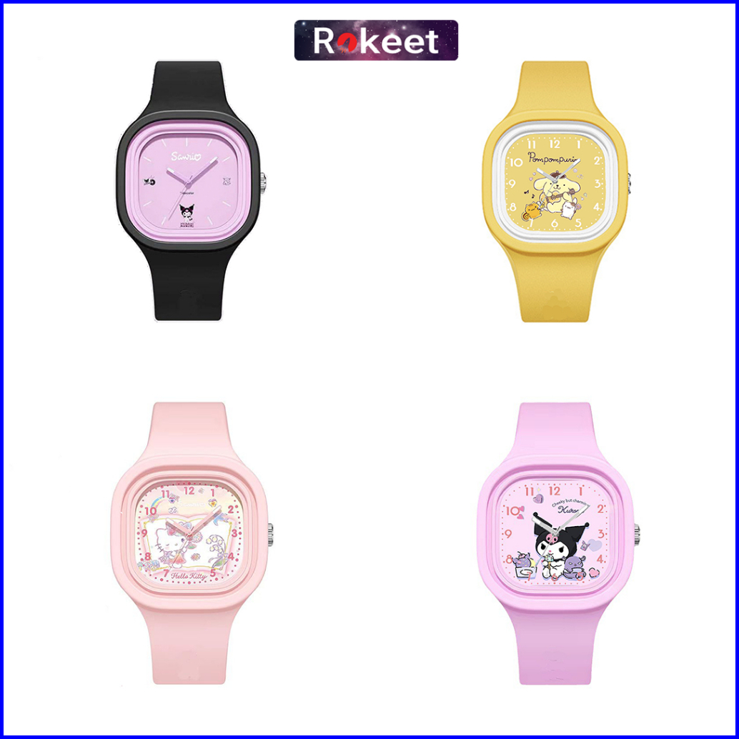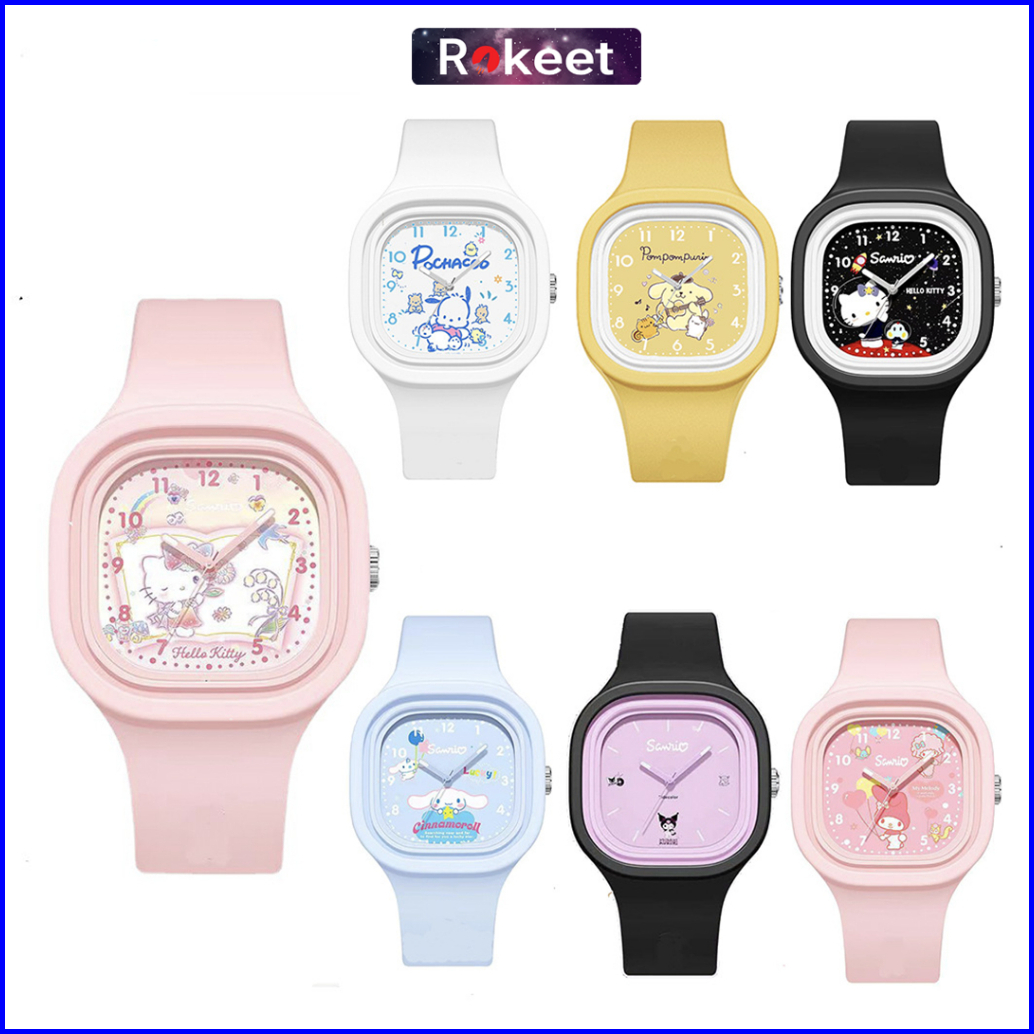 Rokeet Jam Tangan Rubber Analog Karakter Lucu Kuromi Cinnamoroll Sanrio Wanita Anak Perempuan