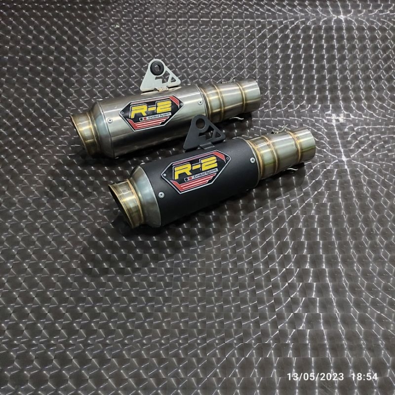 Knalpot Drag roadrace boreup harian R2 Muffler sarangan stengah type R stenlis dan R black