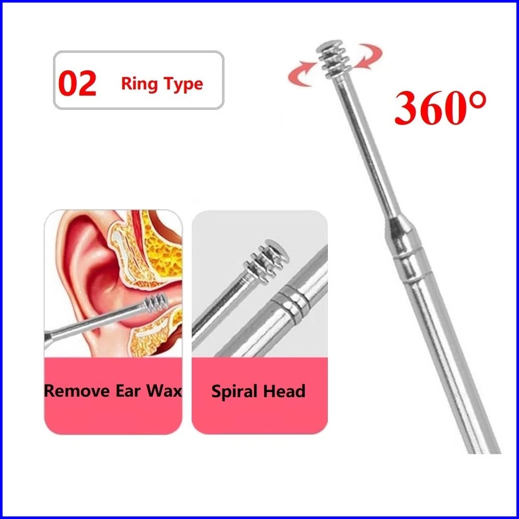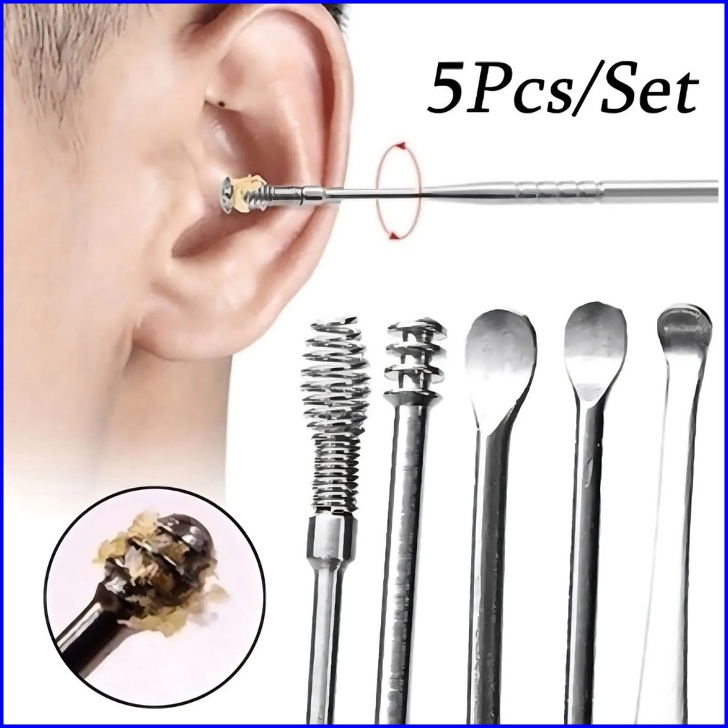 Masterhome Korek Kuping 5in1 Alat Pembersih Kotoran Telinga Set Korek Kuping Stainless Ear Wax Remover