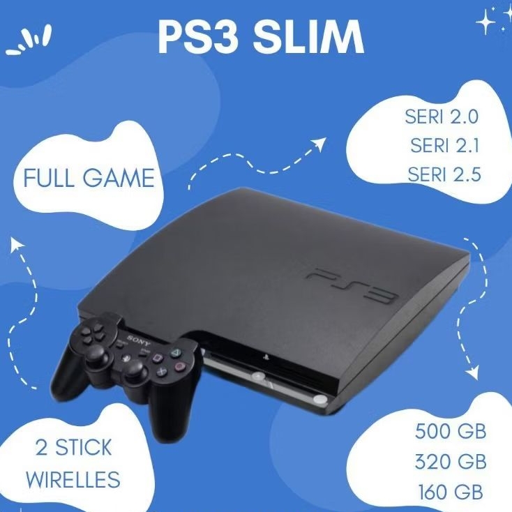 PS3 SLIM + 2 STICK WIRELLES + FULL GAME
