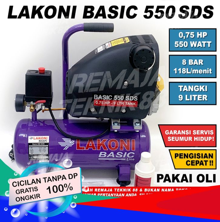 TANPA DP - KOMPRESSOR ANGIN LAKONI 0.75 HP / LAKONI BASIC 550 SDS 9 LITER