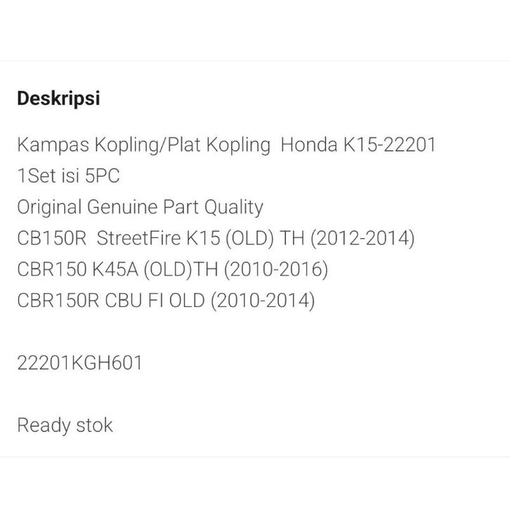 Kampas Kopling K15 Set 5PCH plat/Kampas kompling CB150R OLD streetFire 2012-2014 CBR150 K45A OLD 2012-2015 CBR150 CBU