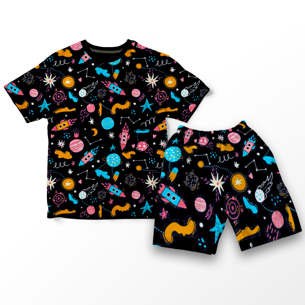 SETELAN FULL PRINT / SET BAJU ANAK COWOK S-XXL MOTIF KARTUN DINO FULLPRINT