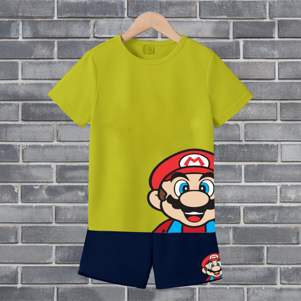 SETELAN BAJU LENGAN PENDEK ANAK LAKI LAKI SET PENDEK KAOS ANAK MOTIF KARTUN MARIO