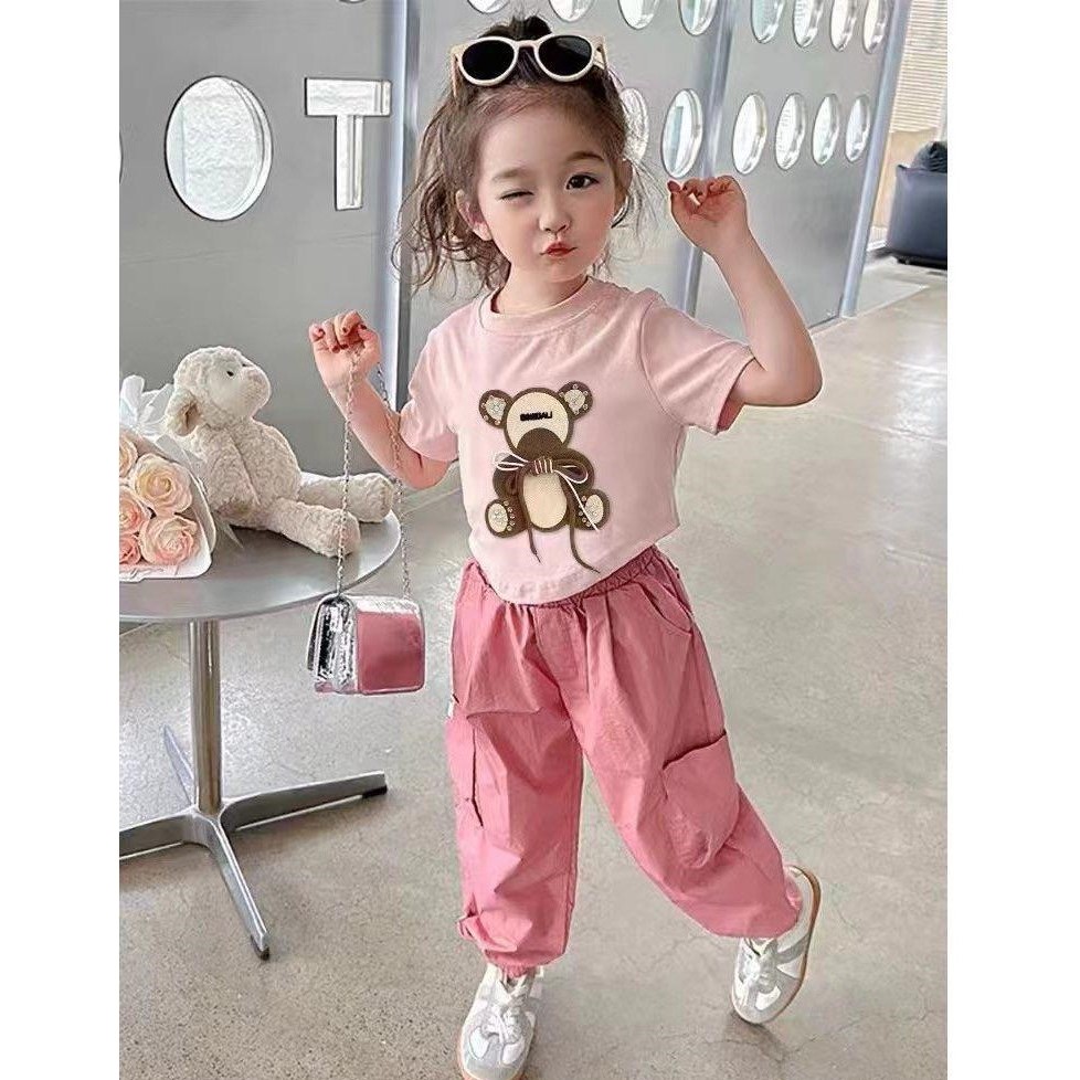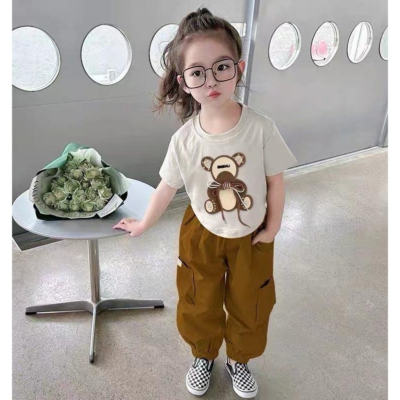 BAJU ANAK PEREMPUAN / SETELAN ANAK KAOS MOTIF PANDA CELANA CARGO PANJANG 1-6 TAHUN TERBARU
