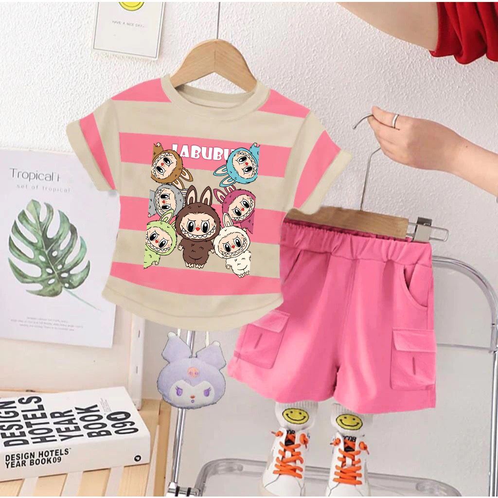 SETELAN BAJU ANAK CEWEK LABUBU SALUR 1-5 TAHUN / PAKAIN ANAK CEWEK 5 TAHUN SETELAN BAJU ANAK VEWEK