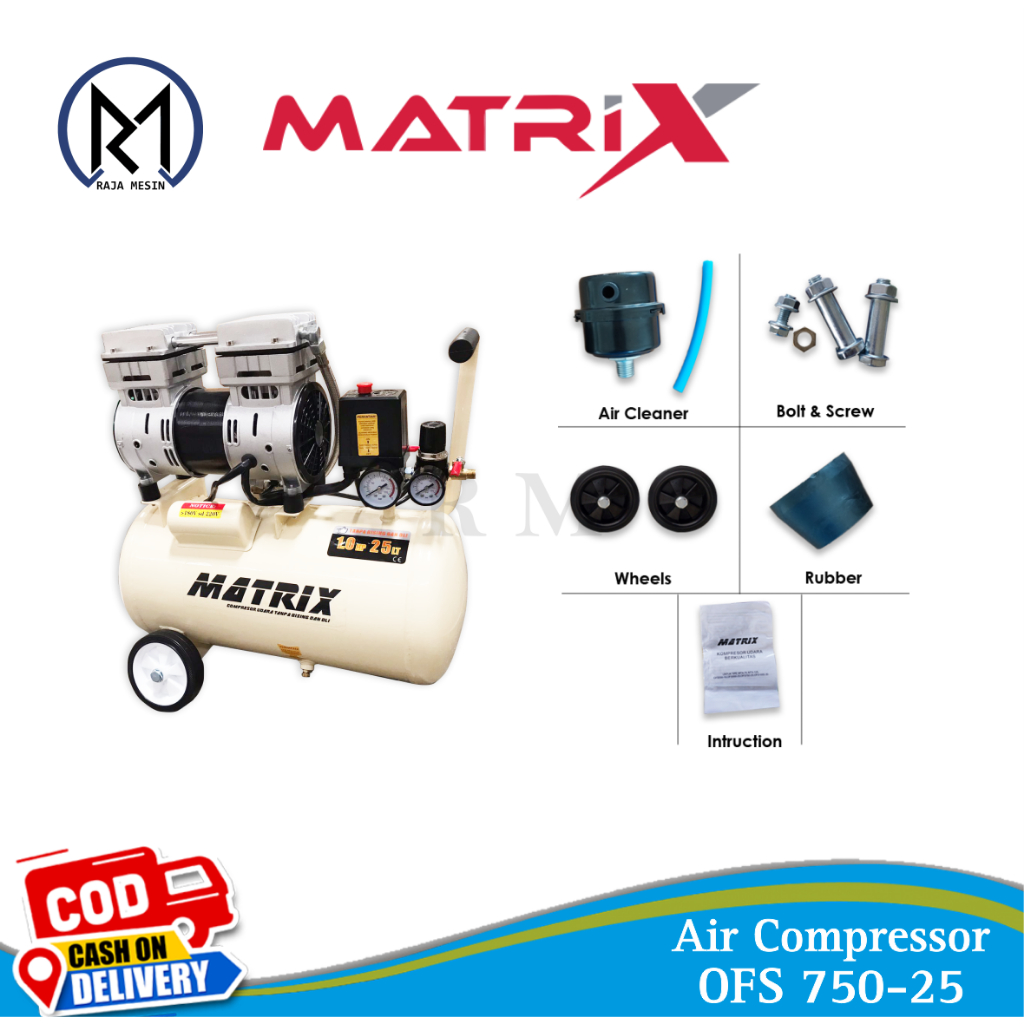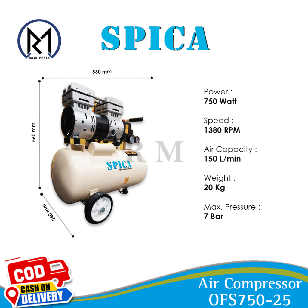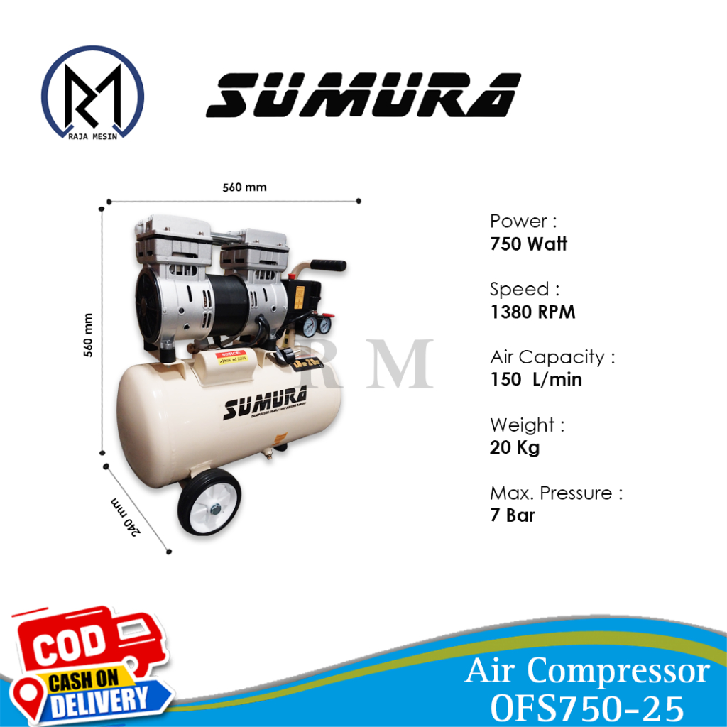 Kompresor Angin Tanpa Oli / Air Compressor Silent OFS 750-25 (1.0 HP, 25 Liter) + Packing Kayu TERMURAH