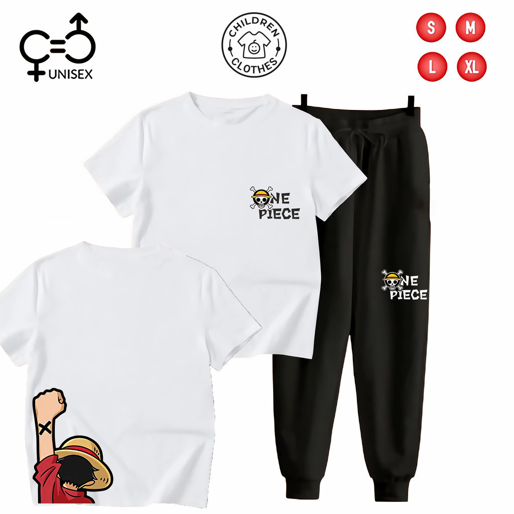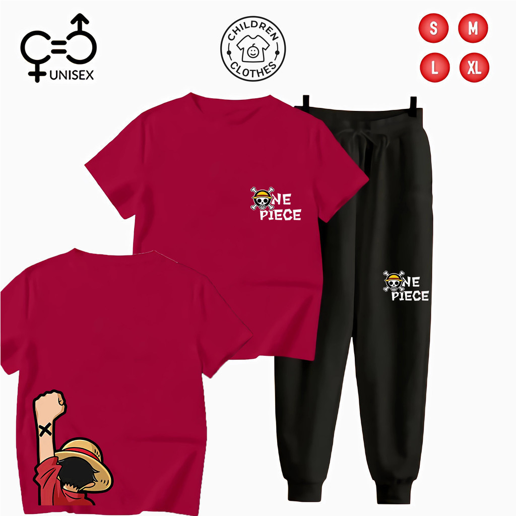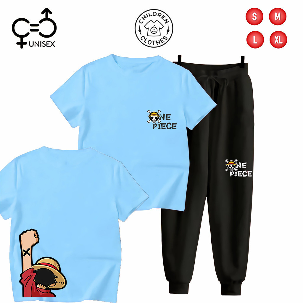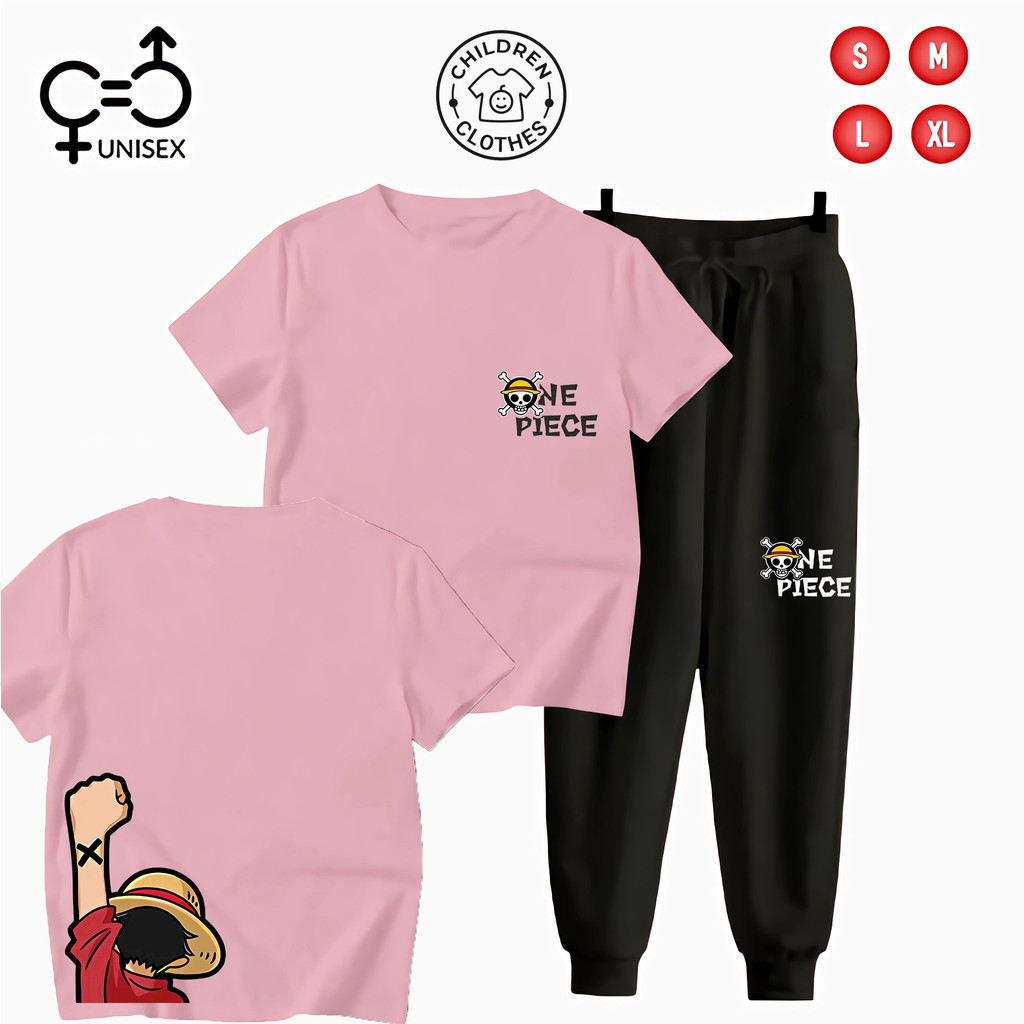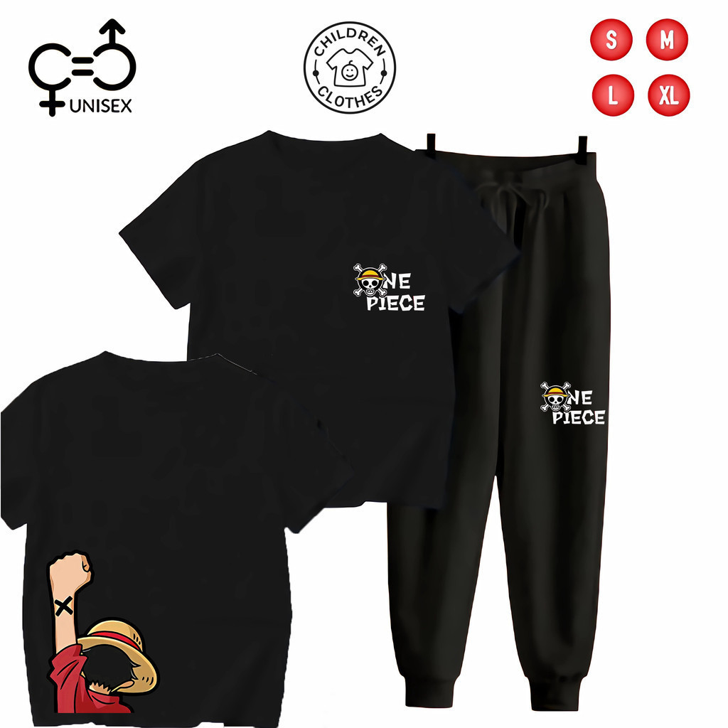 GC - SETELAN ANAK UNISEX KAOS + JOGGER HITAM - LUFFY YEAH