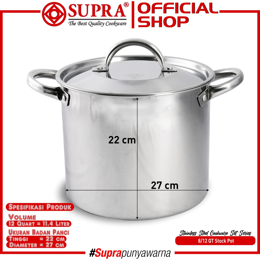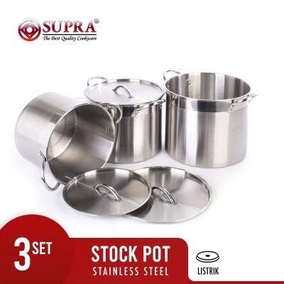 Panci Stock Pot Supra Set Full Stainless Steel Anti Lengket 16 Liter Kukus Rebus Serbaguna Stokpot Multifungsi