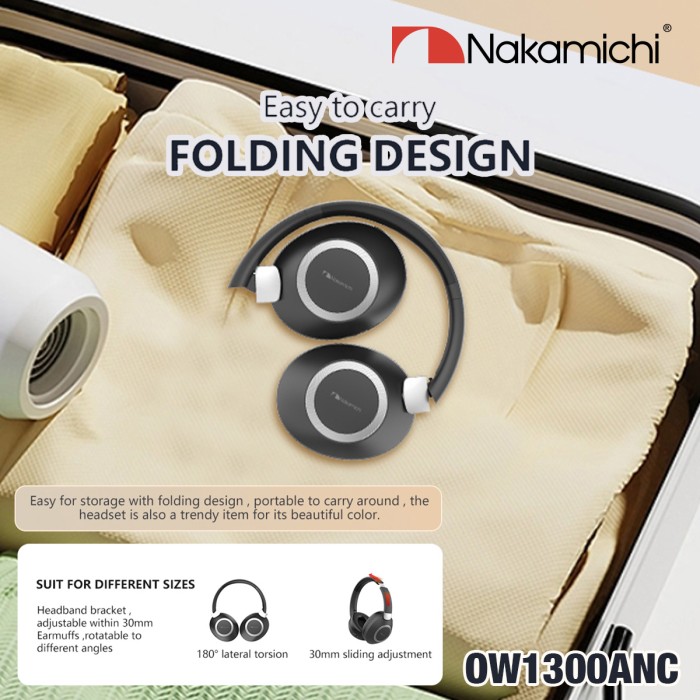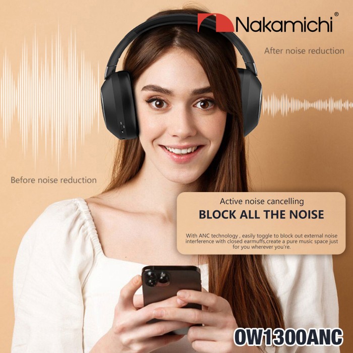 Nakamichi Ow1300Anc Active Noise Cancelling Wireless Headphone Anc Hd Bass Microphone
