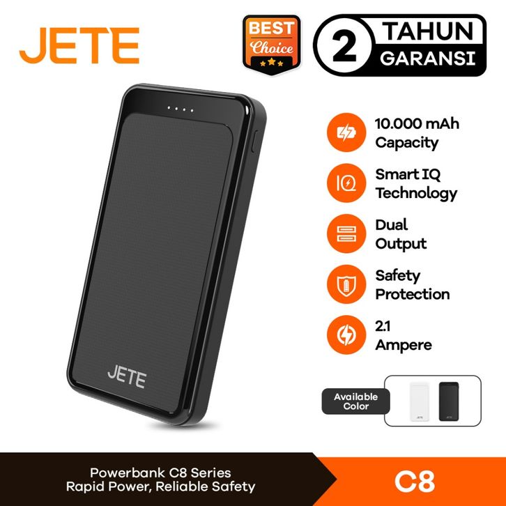 JETE Powerbank C8 10000mAh Dual Output 2.1A Smart IQ Technology - Garansi 2th