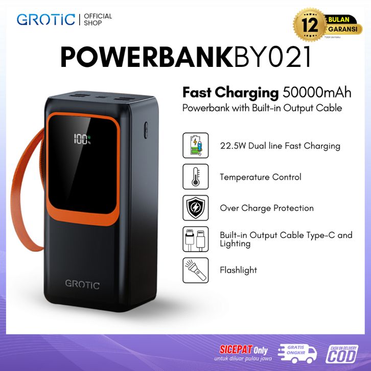GROTIC Powerbank Fast Charging 22.5W Seven Output Dual Input 50000mAh BY021