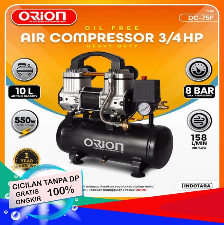 TANPA DP - KOMPRESOR ANGIN OIL FREE 0.75 KW 3/4 HP 10L AIR COMPRESSOR ORION TYPE DC75F