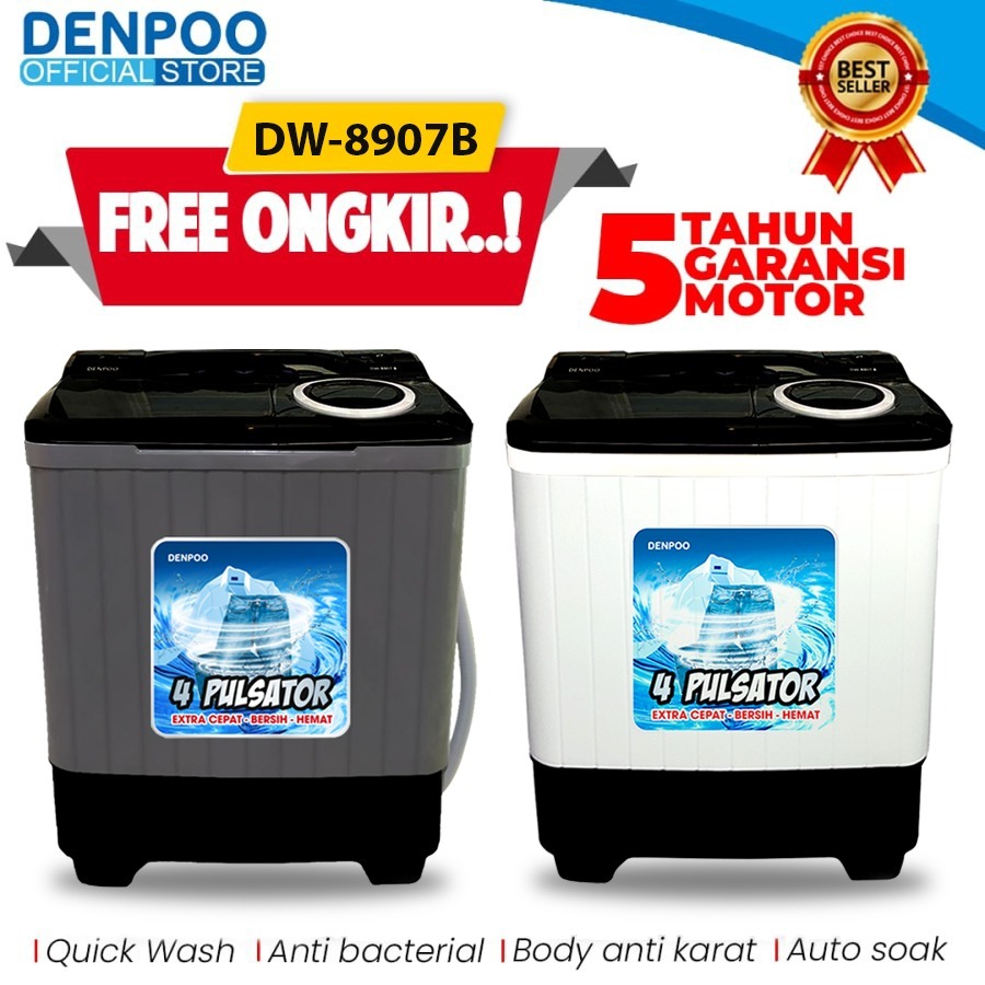 DENPOO MESIN CUCI 2 TABUNG DW 8907B 8KG MESIN CUCI 2 TABUNG DW828 GRATIS ONGKIR