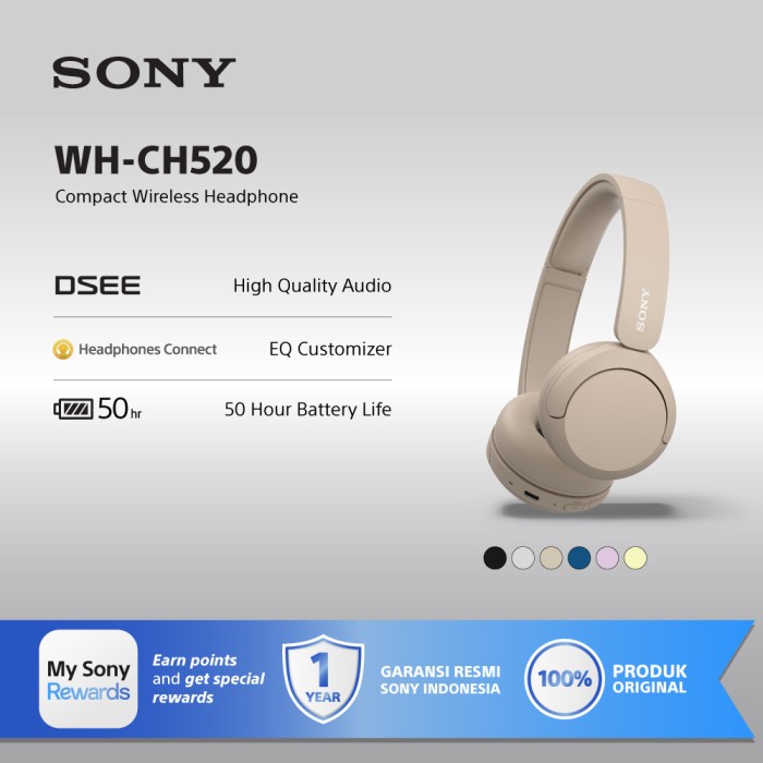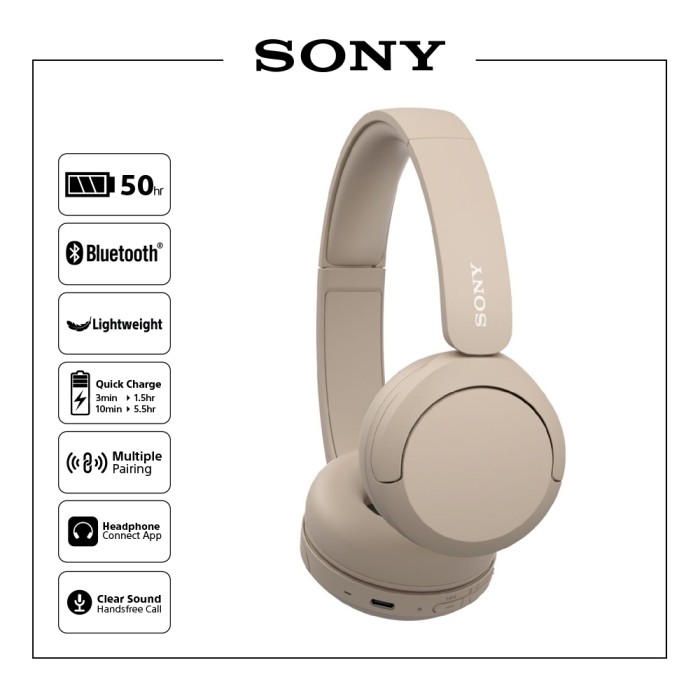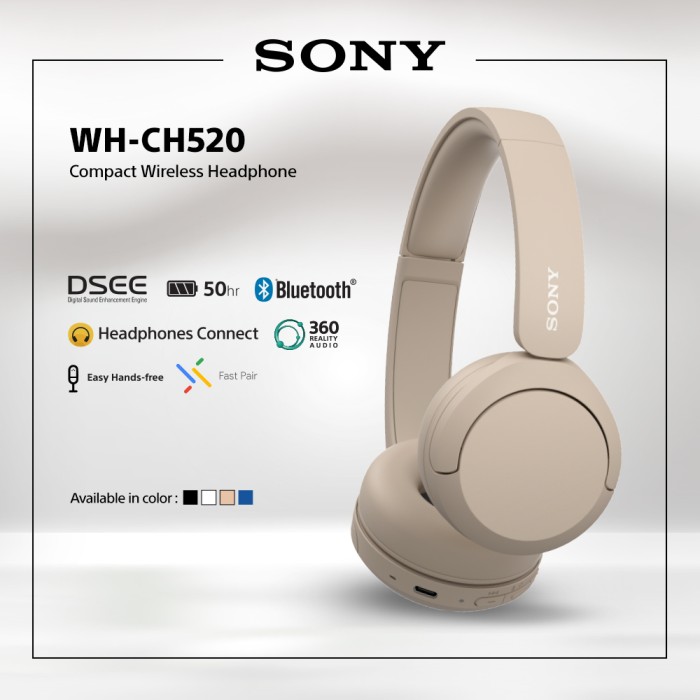 Sony Wh-Ch520 Beige On Ear Wireless Headphone / Ch520 / Ch-520