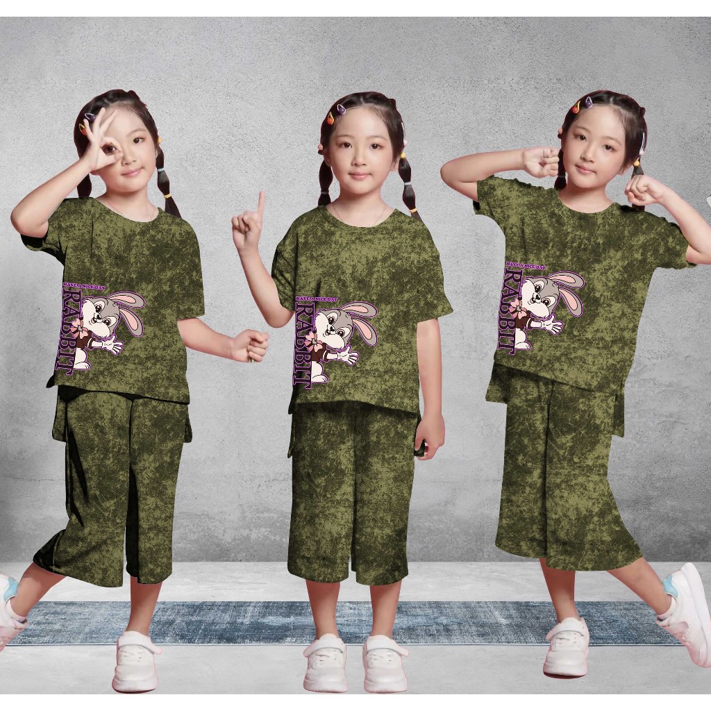 SETELAN ANAK PEREMPUAN RABBIT SIDE USIA 5-13 TAHUN SETELAN KULOT ANAK DORINA