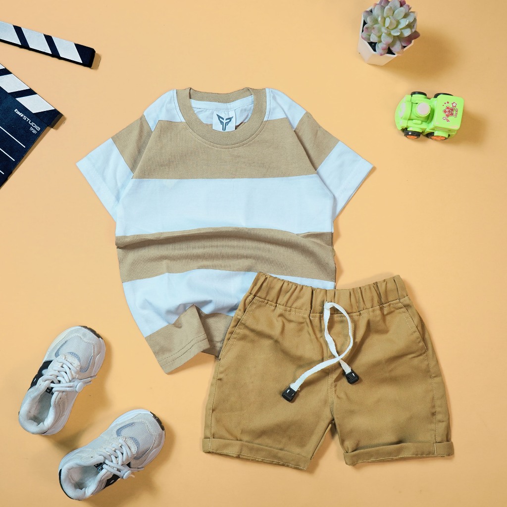 BRAVEKIDS - BROADSTRIPE SETELAN ANAK KAOS DAN CELANA COTTON COMBED 24S SABLON PLASTISOL