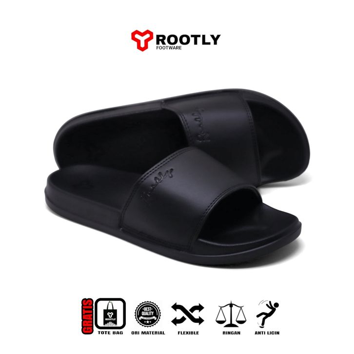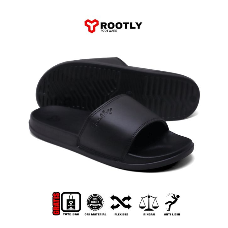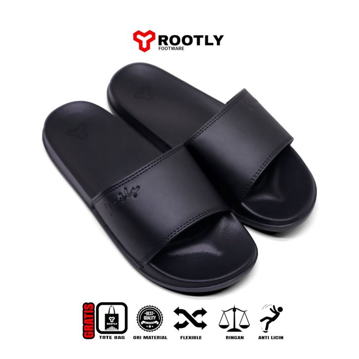 Rootly - Sandal Starboy Pria Silmple Slop Lucida Hitam polos