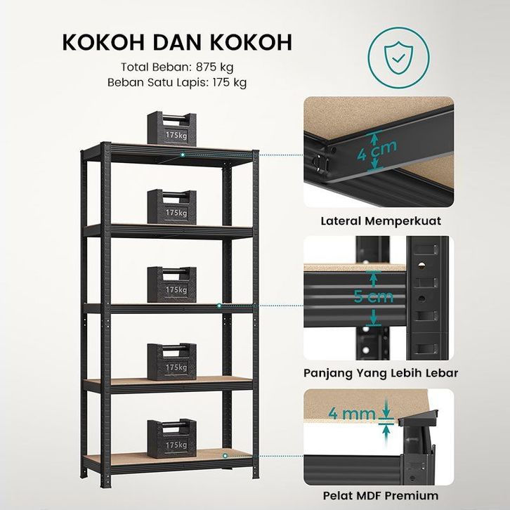 iHOME Rak Susun Besi Rak Besi Siku 5 Susun Rak Besi Susun Serbaguna Rak barang 3/4/5 tingkat