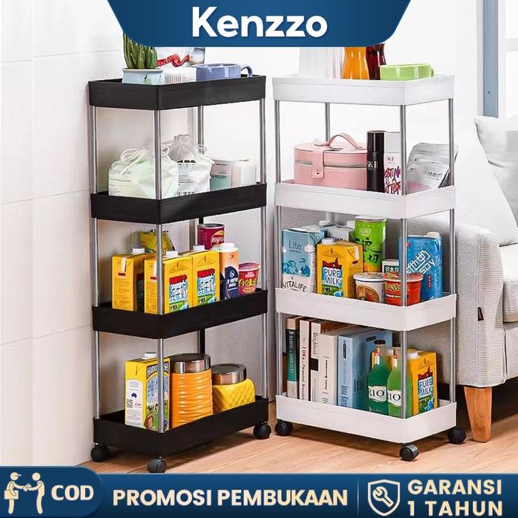 Kenzzo Square Rak Troli Rak Dapur Rak Serbaguna 4 Tingkat Dengan Roda