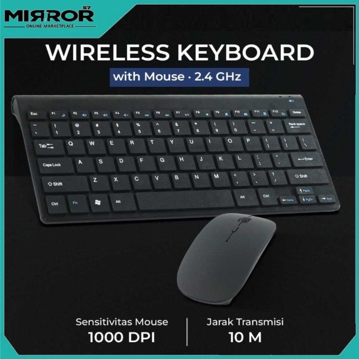 Set Kombo Mouse Keyboard Mini Wireless Portable 2.4GHz Di PC Laptop
