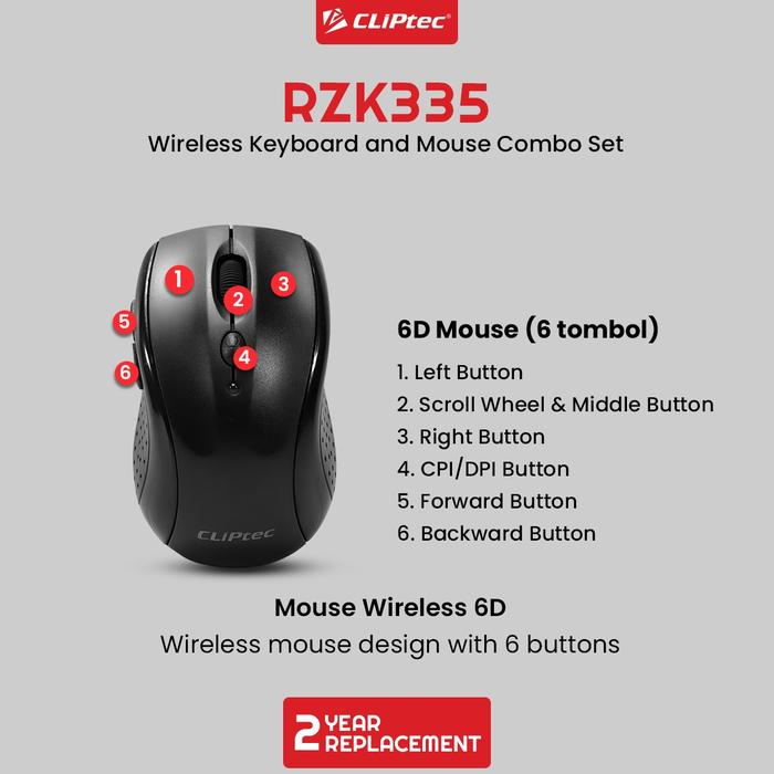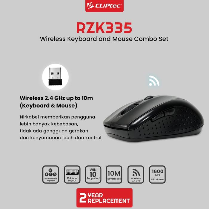 Keyboard Mouse Wireless Combo Set Cliptec RZK335 dengan Keycaps Bulat dan Mouse Nirkabel 1600DPI