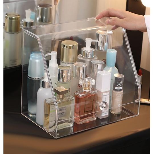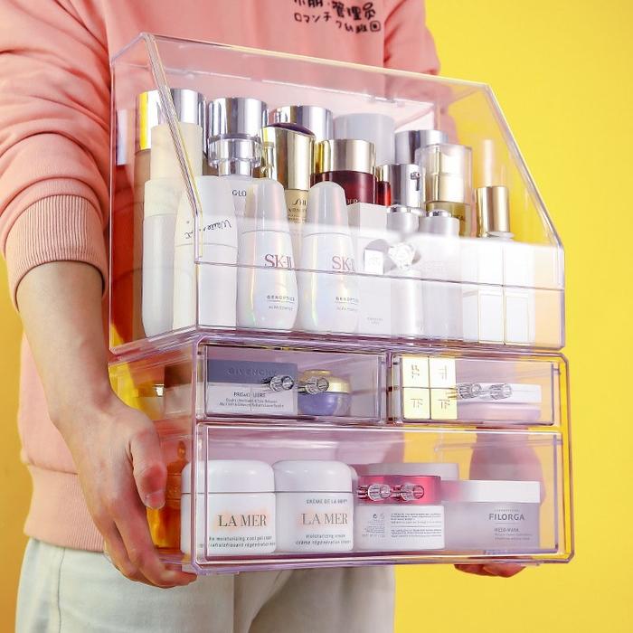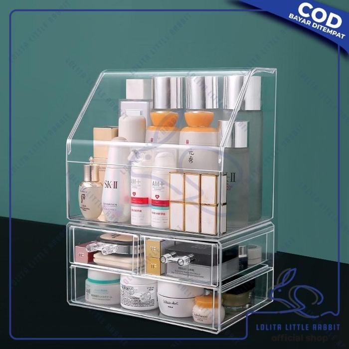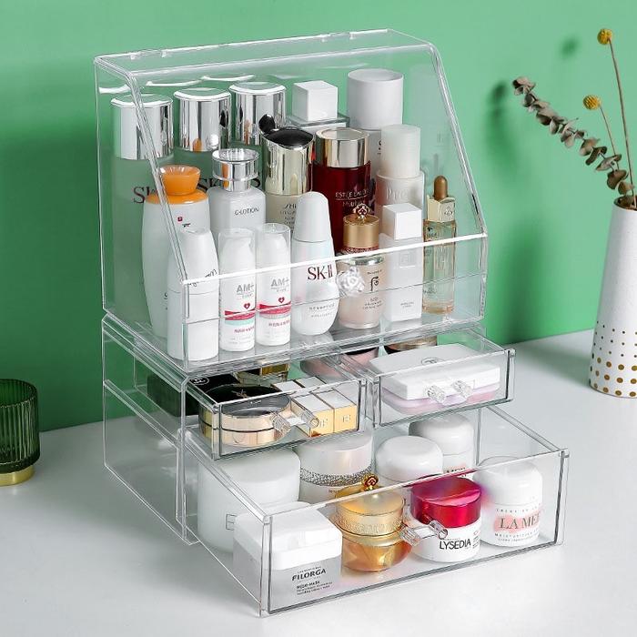 Rak Kosmetik Acrylic Transparan Dengan Penutup Anti Debu Storage Box / Tempat Penyimpanan Laci Multifungsi K133
