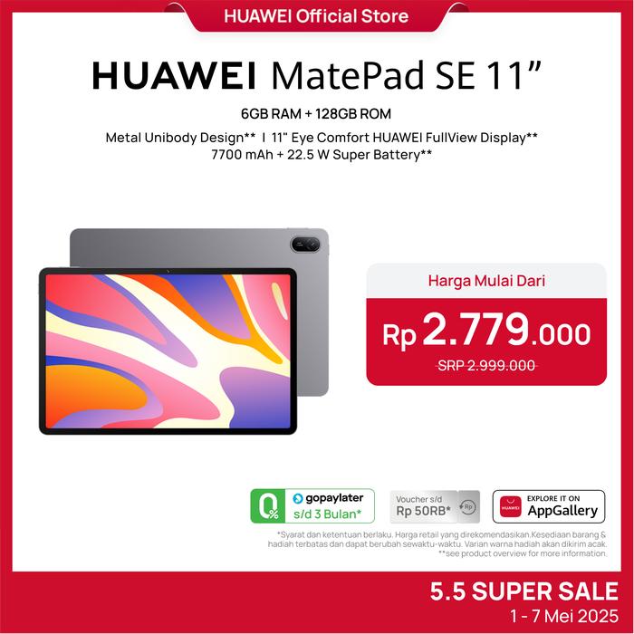 Huawei Matepad Se 11" Tablet [6+128Gb] | 2K Eye Comfort Display | 7700Mah | Metal Unibody - Nebula Grey