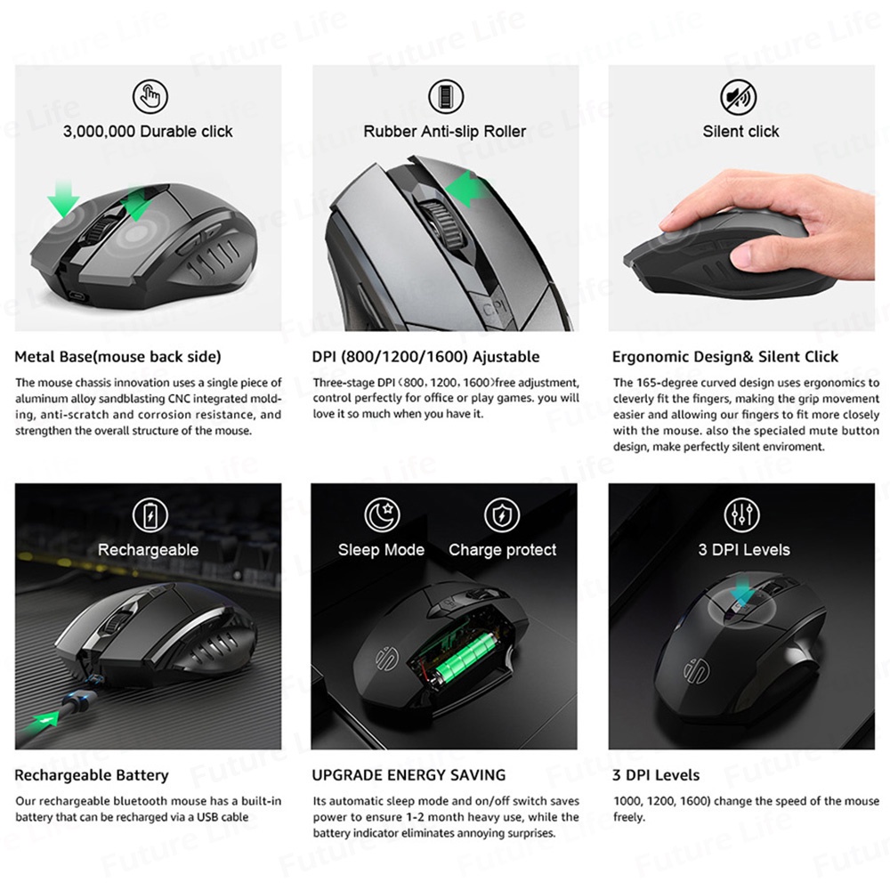 INPHIC PM-6 Mouse Wireless Bluetooth Rechargeable 2.4G Office Silent Mouse Support PC Laptop Tablet Mouse Gaming
