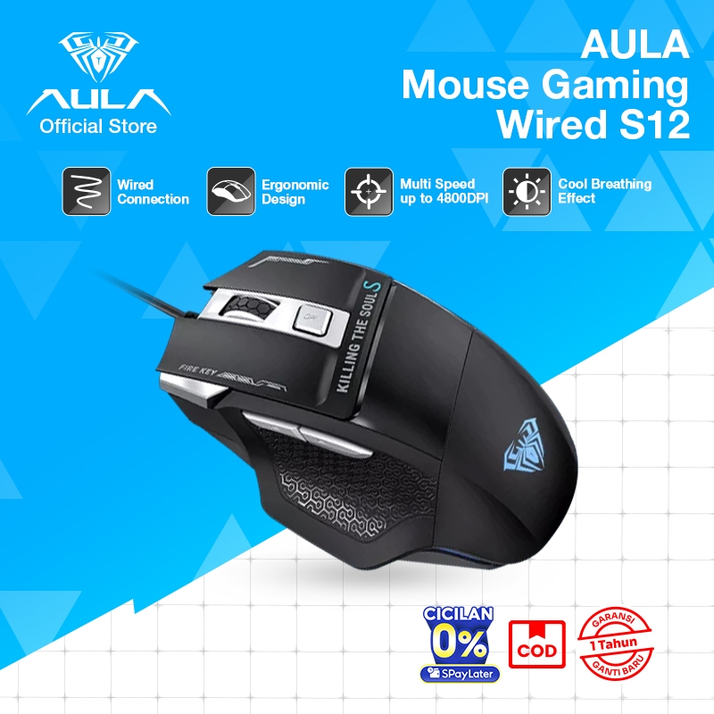 AULA Wired Mouse Gaming Professional Office Mouse Tipe S12 RGB Light Low Latency Esports Gaming Mouse Laptop PC Original