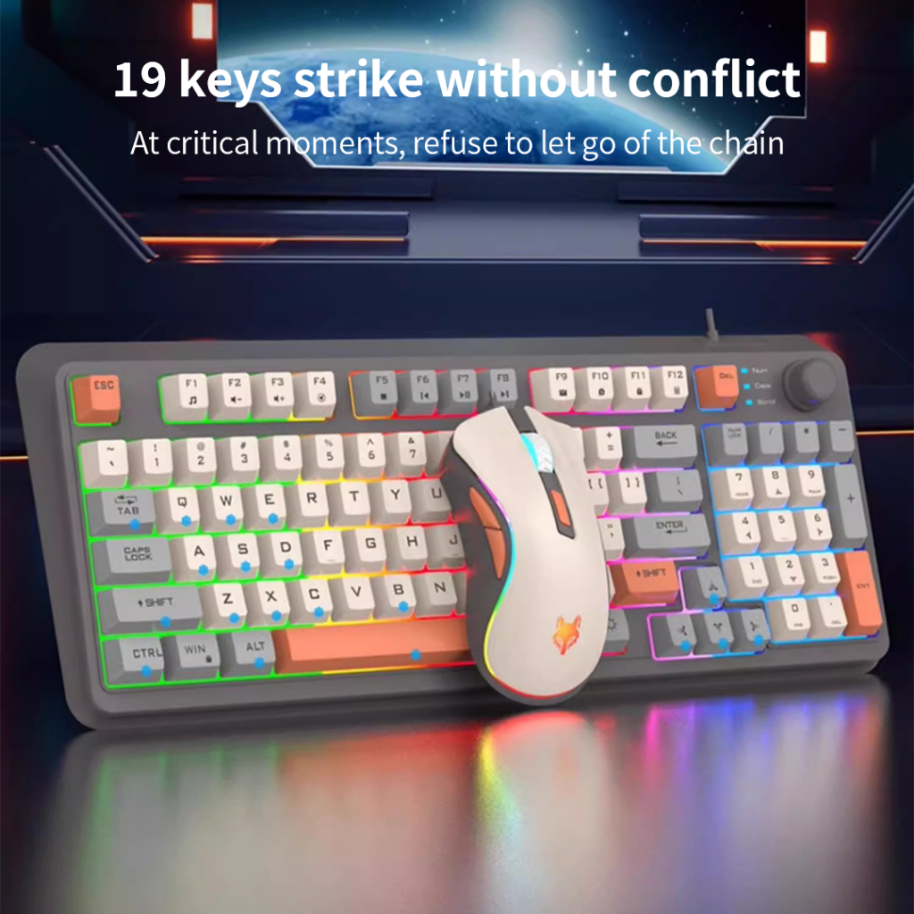 XUNFOX K820 Wired Keyboard and Mouse Set With Color Lighting Effect For Work, Study, E-Sport