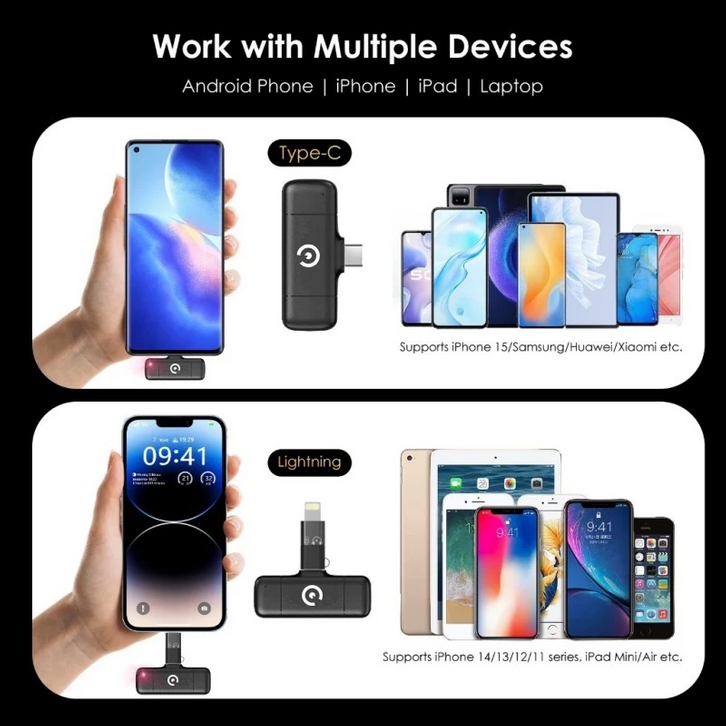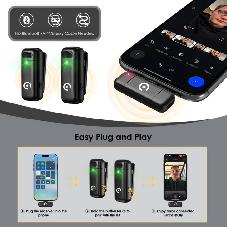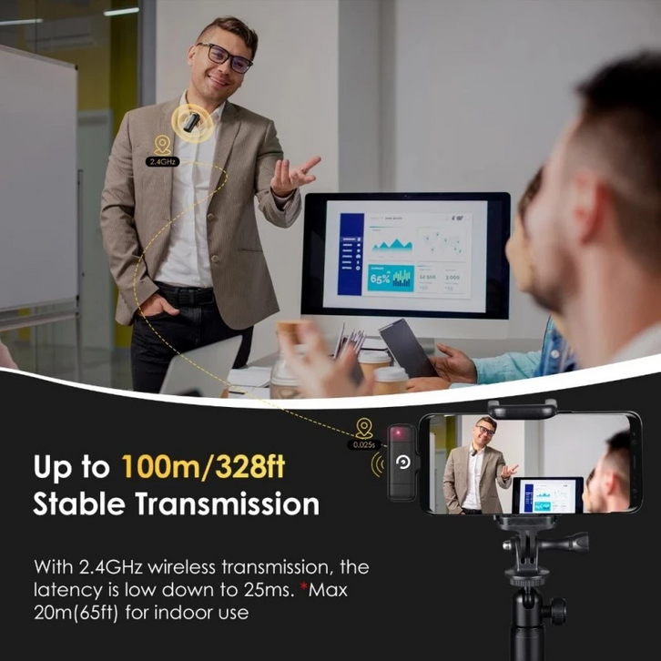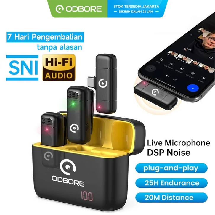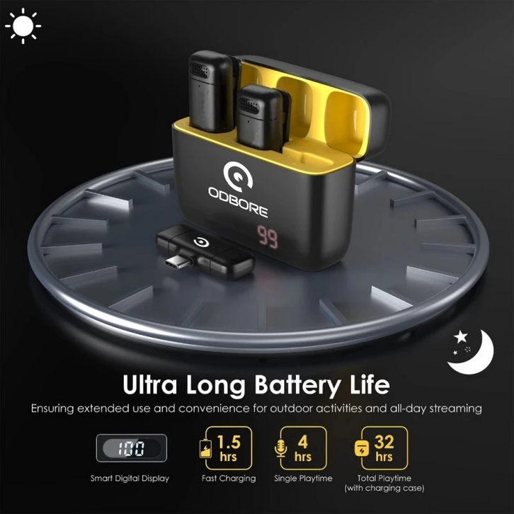 Microphone Wireless ODBORE Premium Live stream/Video Mic Clip &Charging Case