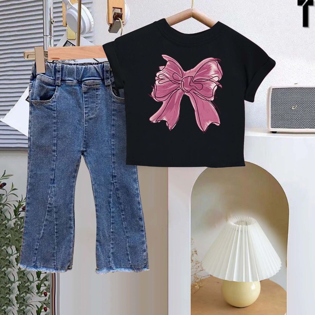SETELAN ANAK 1-5 TAHUN PITA DENIM PANJANG / PAKAIAN ANAK PEREMPUAN / SETELAN BAJU CELANA DENIM PANJANG / BAJU ANAK BANGS