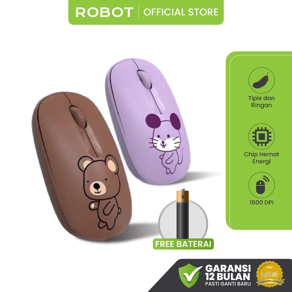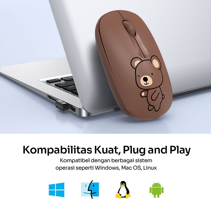 ROBOT Mouse Laptop Tanpa Kabel Mouse M260 Mini Bear Karakter Hewan Lucu Nano Receiver 2.4G Wireless Optical USB Mouse Or